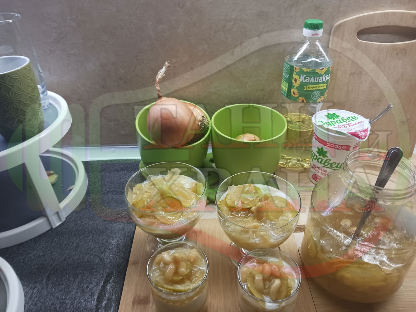 Млечен десерт "Кромидтиквичков с фъстъци" приготвен със сладко от кромид лук, тиквички, сурови фъстъци и кисело мляко от България