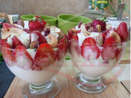 В "Свързани продукти" вижте рецептите на други видове млечни плодови десерти, салати и хлебни сладоледи с ягоди, кисело мляко, различни видове ядки, зеленолистни и техни"ТЕ" производни.