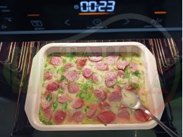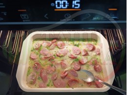 ВНИМАНИЕ: Фурните са различни и съответно времето за сваряване и запичане е ориентировъчно. Наблюдавайте процеса на запичане и при необходимост, покрийте с капак. Разбърквайте и обръщайте наденицата за да се запече равномерно от всички страни.