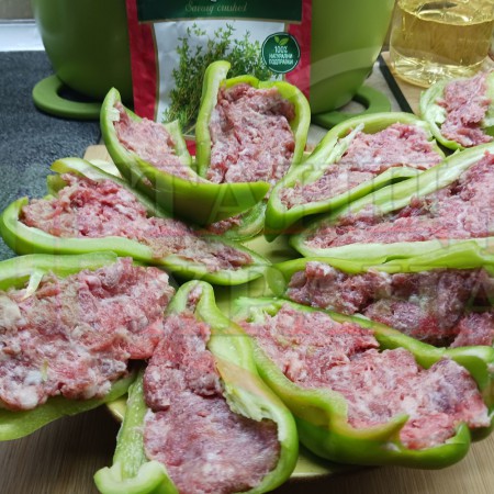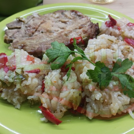 РЕЦЕПТИ С КАЙМА ЯСТИЯ С РИБА - ОТ ВСИЧКИ КАТЕГОРИИ ЯСТИЯ С ОРИЗ Рецепти за ястия с ориз и традиционни български ястия, в които присъства ориза като основна съставка. Покажи: 5 10 15 20 25 30 50 100 Всички Пълнен свински бут без кост "Червеночушков зеленолучено доматен с БГмерудии" запечено на фурна с краве масло, кромид лук, картофи, свеж магданоз и ориз с плънка от червени пресни чушки, зелен лук, ронена чубрица и домати Никулденски филетиран шаран "Шарановофилев червеночушковоморковен празлученооризов 2025 г." запечен на фурна с праз лук, ориз, червени пресни чушки и моркови Зеле с ориз "Зелевопрясно родопсконаденицово червеночушково" сварено и запечено на фурна с прясно зеле, кромид лук, червени пресни чушки, копър и родопска наденица сурово гарнирано с марулено майонезена основа и кисело мляко от България - производно Зеле с ориз "Зелевопрясно саздърмовотопчесто копъровочервеночушково" сварено и запечено на фурна с прясно зеле, кромид лук, червени пресни чушки и копър сурово гарнирано със саздърмови топчета от саздърма, свеж магданоз и зелен лук - производно Пълнено свинско контрафиле с ориз "Краставичнолютенично оризовоспаначено" запечено на фурна с краве масло, кромид лук и свеж спанак с плънка от пресни краставици и едросмляна лютеница гарнирано с млечна основа с кисело мляко от България Млечен оризов сладък десерт "Малиновосиропен" сварен на фурна с прясно мляко и ориз гарниран с малинов сироп, приготвен с три основни продукта Българска оризова доматена яхния "Доматеномагданозена воднолучена" приготвена от пресни домати напълнена в кладенчета от овкусен ориз със свеж магданоз и стар чесън предварително сварен с воден лук - производна (2) Българска оризова млечна краставична яхния "Доматенолучена деликатессаламена киселомлечна" приготвена от краставици, копър, чесън и кисело мляко от България напълнена в кладенчета от ориз с пресни домати и воден лук гарнирана със салам-производна (1) Ориз "Доматен воднолучен киселомлечен" сварен на фурна с пресни домати, воден лук и слънчогледово олио подходящ за постещи хора или в млечен вариант гарниран върху основа от кисело мляко от България - основен Българска зелево оризова млечна яхния "Пряснозелевооризова кашкаваленояйчена" приготвена от запечено на фурна прясно зеле, кромид лук и ориз оформена като кладенче напълнено с кисело мляко от България гарнирана с варени яйца - производна Пилешки бутчета "Пряснозелеви оризови" запечени на фурна с прясно зеле, кромид лук и ориз гарнирани в магданозено кладенче от свеж магданоз Български оризови кюфтета "Сушеницовопълнени киселомлечнияйчени " приготвени с ориз, копър и чесън напълнени с манастирска сушеница с панировка от яйца и кисело мляко от България запечени на фурна със зелени и червени пресни чушки - производно (2) Ориз "Родопсконаденицов лютеничен" сварен на фурна с чесън и родопска наденица (с български мерудии) оформен като кладенче напълнено с едросмляна лютеница Ориз "Русенсковарен червеночушковотопчест" сварен на фурна с пресен лук и чесън запечен с краве масло и червени пресни чушки овкусен и гарниран с русенско варено от консерва оформен като топки - производно Ориз с риба "Скумриевопикантен магданозен зеленолучен" сварен на фурна с пресен лук и чесън запечен с краве масло и овкусен със скумрия в подлютен доматен сос от консерва 