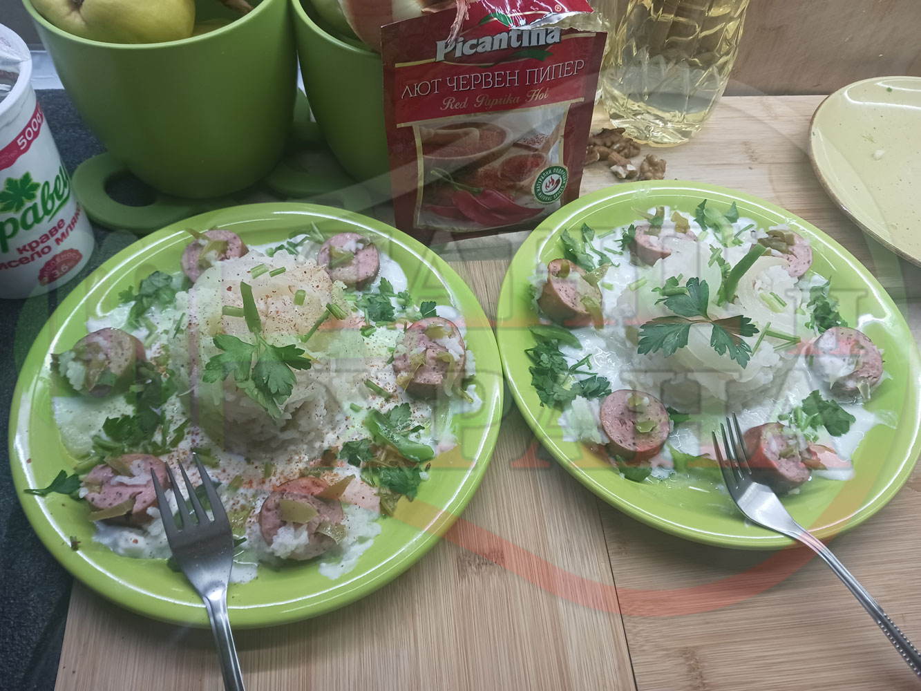 7. Сол - половин супена лъжица (съобразете според солеността на наденицата)