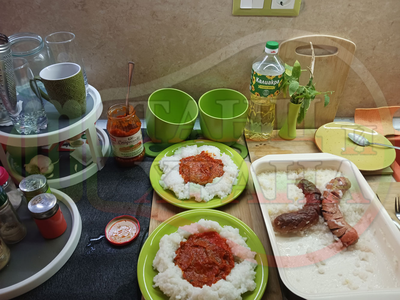ПРОДУКТИ: Приблизителни количества за ориз "Родопсконаденицов лютеничен" сварен на фурна с чесън и родопска наденица (с български мерудии) оформен като кладенче напълнено с едросмляна лютеница