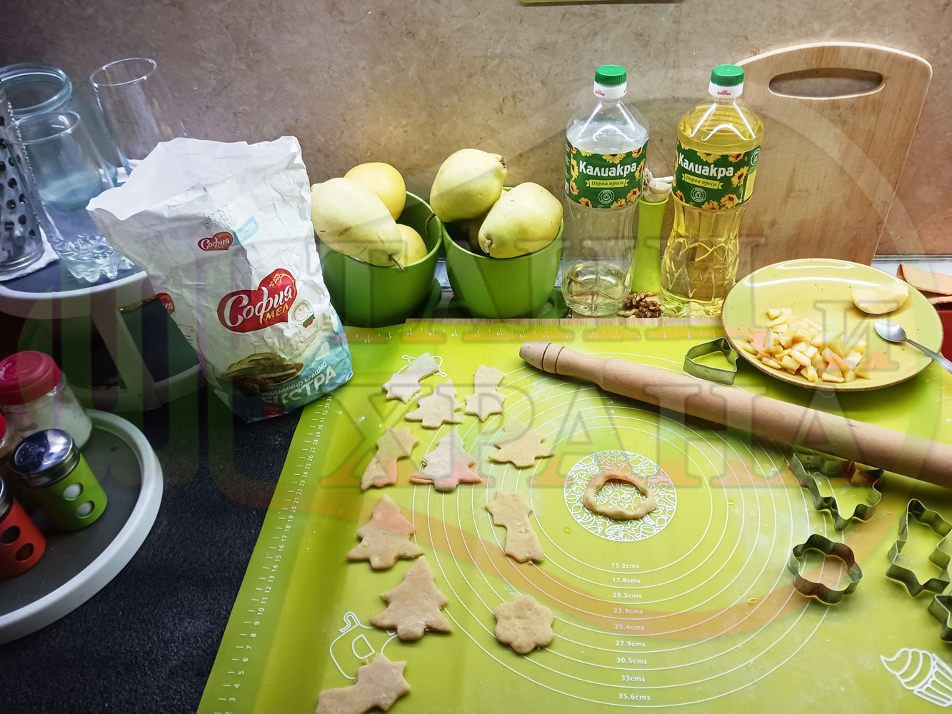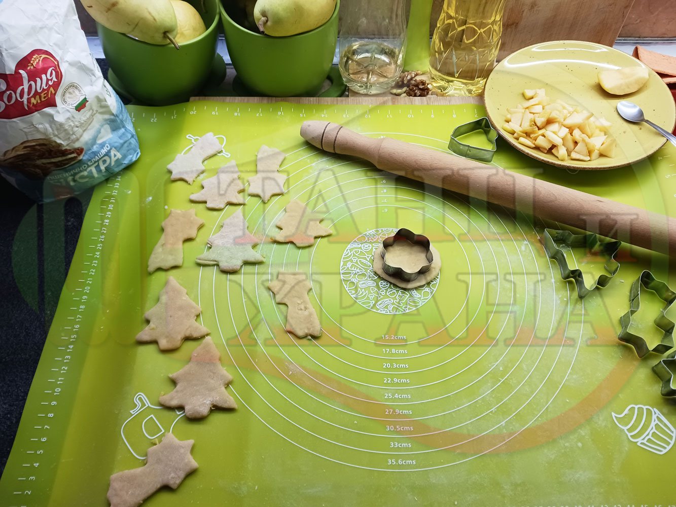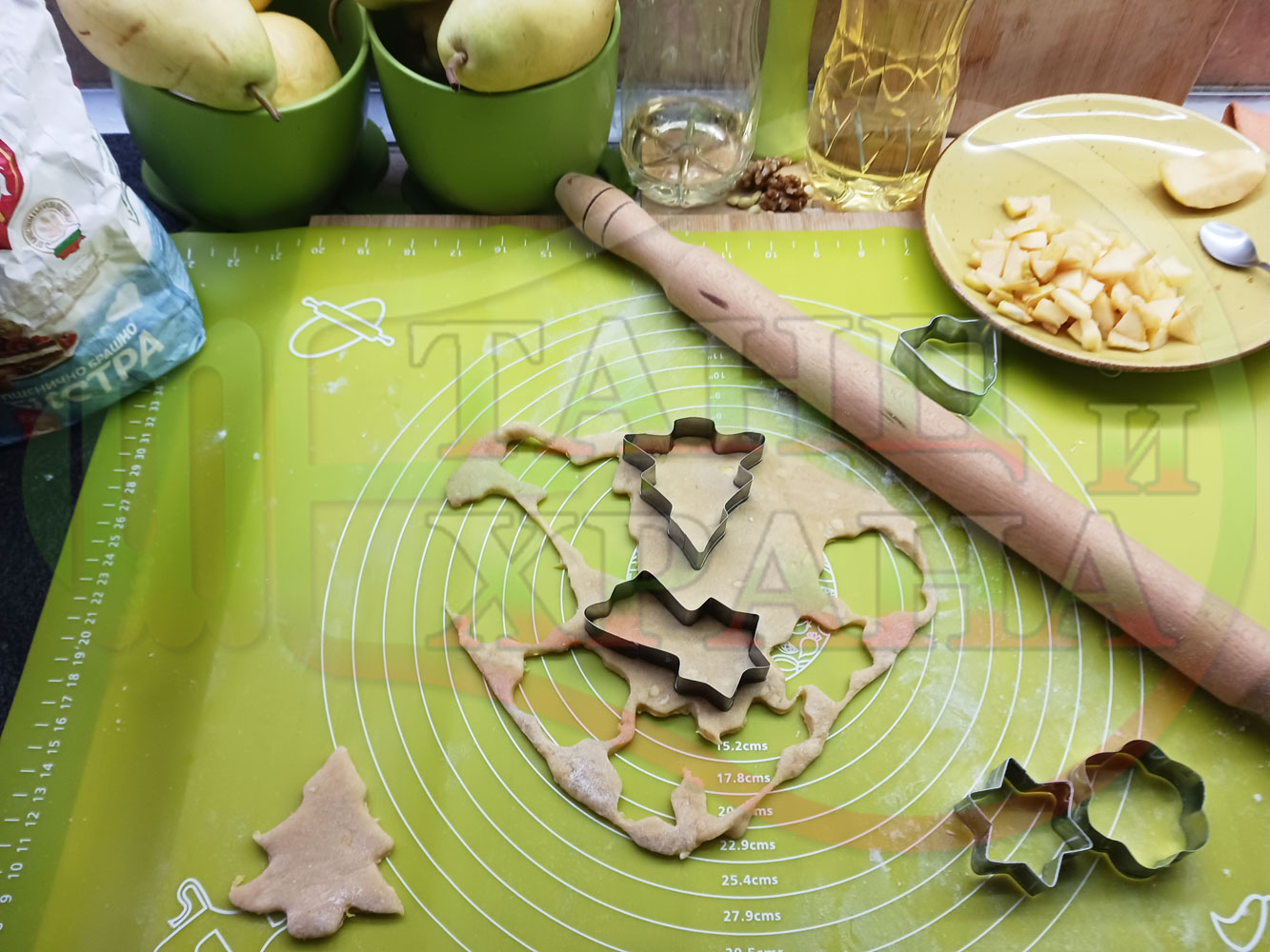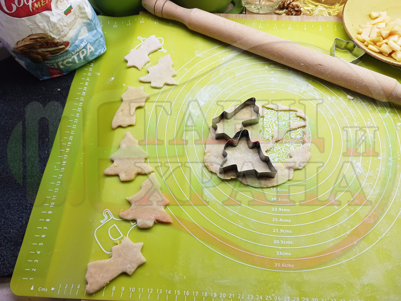 Български класически коледни курабийки "Ябълкови канелени" приготвени с пресни ябълки и канела за Коледа 2025 г. омесени с брашно, яйца и кристална захар