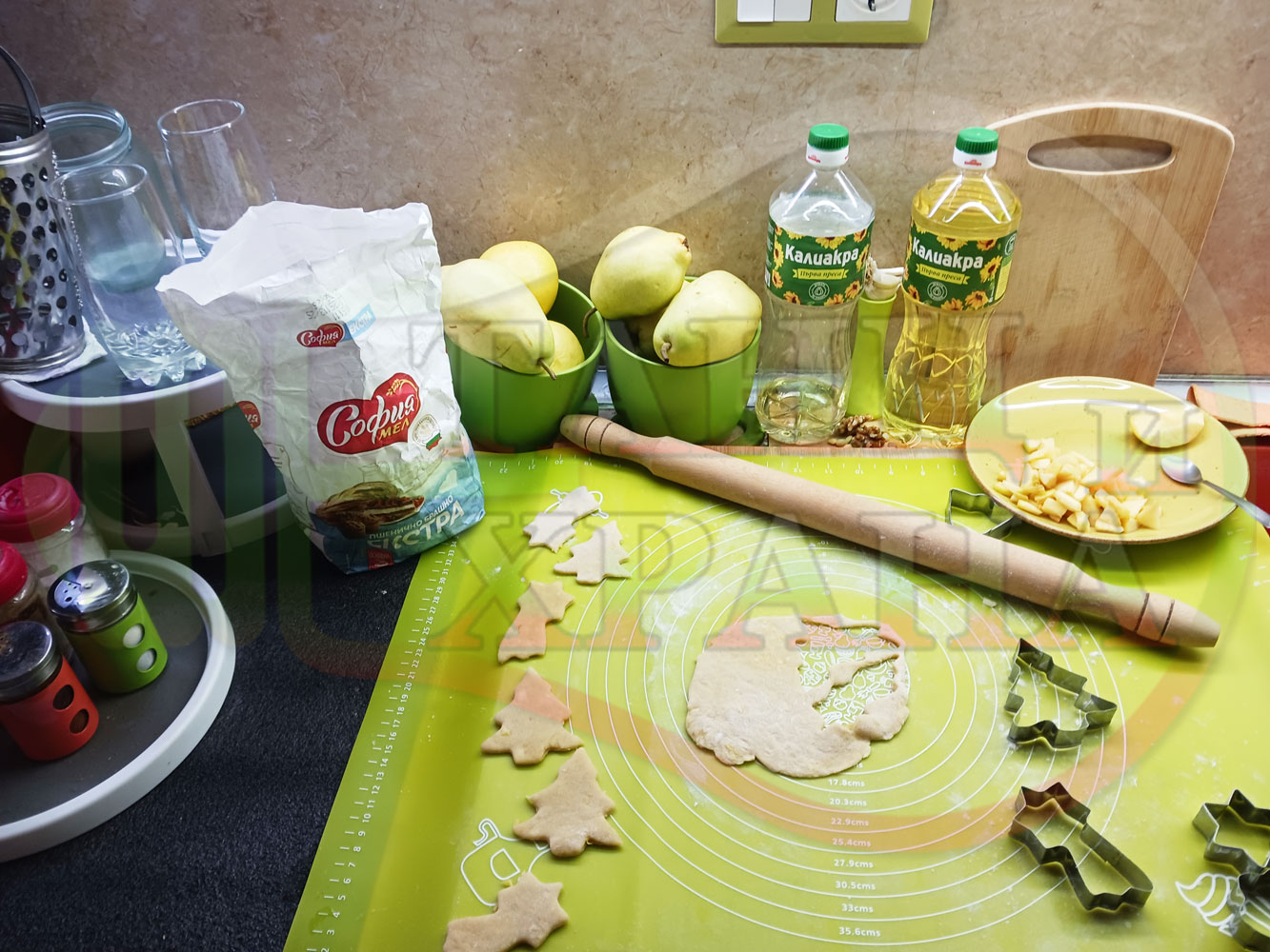 ПРОДУКТИ: Приблизителни количества за български класически коледни курабийки "Ябълкови канелени" приготвени с пресни ябълки и канела за Коледа 2025 г. омесени с брашно, яйца и кристална захар