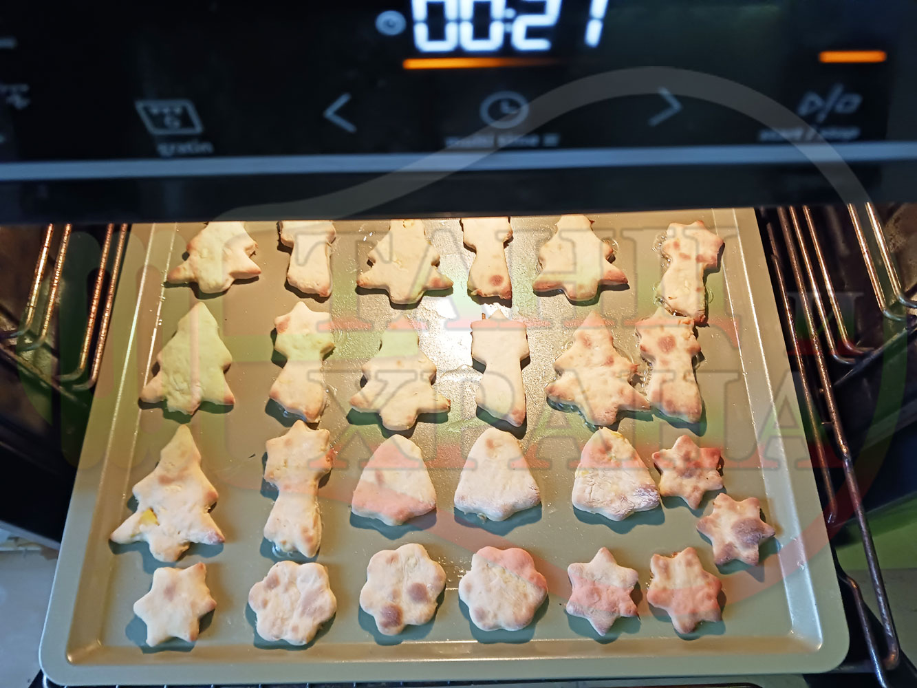 ВНИМАНИЕ: Фурните са различни и съответно времето за запичане е ориентировъчно. Наблюдавайте процеса на запичане и при необходимост, покрийте с хартия, фолио за печене или сменяйте позициите на тавите според нивата на фурната за да се запекат равномерно курабийките без да ги покривате. Имайте предвид, че по-маките курабийки се запичат по-бързо от по-големите и е необходимо да ги изваждате от тавата веднага щом се запекат и дори да ги обръщате при необходимост.