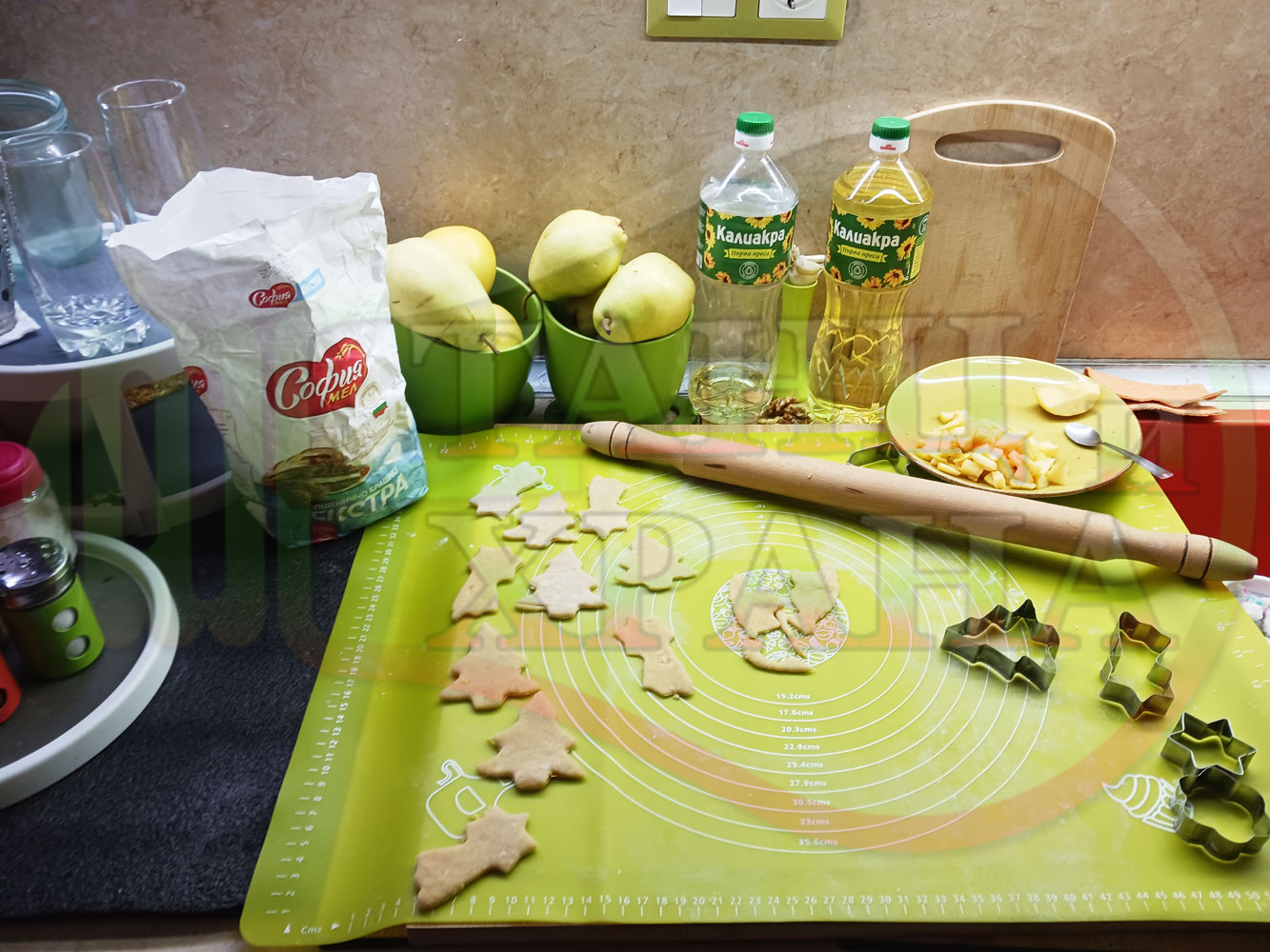 Спретнах български класически коледни курабийки с ябълки и канела за Коледа 2025 г. Помня от моето детство мириса на запечени ябълки и карамелизираните им сладки корички. През онези години не се намираше толкова лесно канела и предмно у нас ухаеше на запечени ябълки (майка ми приготвяше най-вкусната сладка баница с ябълки и захар). През зимните месеци винаги имаше запечени ябълки в някакво сладко лакомство, които много обичахме. Реших тази година да приготвя българските класически (обикновени) курабийки с ябълки и добавих канела, а ябълките са особено вкусни с канела. Запекох част от курабийките с парченца ябълки и кристална захар както ги приготвяхме като деца и отново се получи невероятна вкусно, вкусна, вкусотия (вкуснотия). ![]()