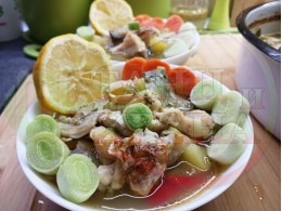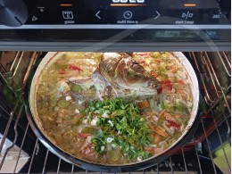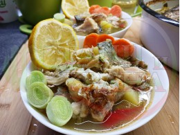 На "връх" Никулден (6.12.2025 г.), по стар български обичай бях решила да приготвя шаран на фурна увит в тесто. В последния момент реших да променя рецептата за Никулден и да спретна филетиран шаран с праз лук, ориз и зеленчуци и рибена чорба от главата на шарана, перките и част от по-тлъстичкото месце. Главата на шаран от 4 кг. е доста голяма и съдържа достатъчно хубаво месо за да се приготви рибена супа, а често се подценяват и изхвърлят. Рибената супа се получи доста вкусна, носеща сладостта на празия лук, морковите и червените пресни чушки, дообогатена със свежестта на пресния магданоз и пикантния чесън. Рибените супи, приготвени на фурна са изключително вкусни заради запичането на месото, което преди това се е сварило със зеленчуците и взаимно сасе овкусили. Запекох рибената глава и месото с краве масло, което допринася за изключителния вкус на супата (имайте предвид, че на Никулден се приготвя риба без добавянето на животински мазнини каквото е маслото и е желателно да се съобразите, в случай че сте от постещите хора и спазвате постите). Отново спретнах полезна вкусно, вкусна, вкусотия (вкуснотия)... ![]()
