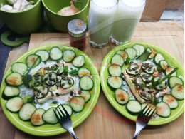 ПРОДУКТИ: Приблизителни количества за българско краве бяло сирене "Краставично пряснолучено киселомлечно копърово" запечено на фурна с пресни краставици, зелен лук и червен сладък пипер гарнирано върху млечна основа със свеж копър, стар чесън и кисело мляко от България - двукомпонентна