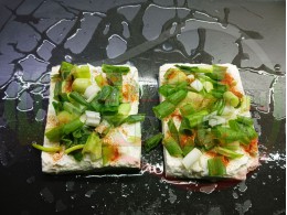 Поръсете готовите порции с червен и/или лют пипер преди да запечете сиренето и/или поръсете готовите порции на вкус.
