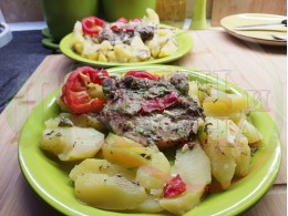 ВНИМАНИЕ: Фурните са различни и съответно времето за варене и запичане е ориентировъчно. Наблюдавайте процеса на запичане и при необходимост, поставете капак или отстранете тавата от фурната. Разбърквайте и обръщайте пържолите за да се запекат равномерно.