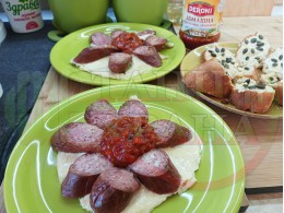 В "Свързани продукти" вижте рецептите на други видове закуски и печива с родопска наденица, яйца, салами, колбаси и техни"ТЕ" производни.