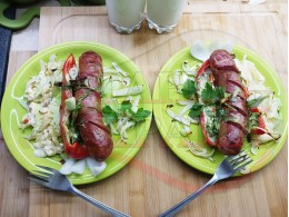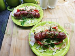 В "Свързани продукти" вижте рецептите на други видове български закуски и печива с родопска наденица, яйца, салами и колбаси, различни сурови и комбинирани двукомпонентни салати техни"ТЕ" производни.