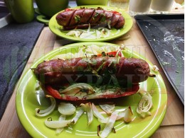 Мммм..., в кухнята се носи аромат на запечени на фурна пълнени червени пресни чушки с родопска наденица и яйчено млечна заливка, подходяща за късна закуска, обяд, а защо не и вечеря. При хапване се усеща сладостта и леката карамелизация на кромид лука, която хармонира в идеален баланс с млечните и животински протеини от яйцата, наденицата и българското кисело мляко с полезната, здравословна бактерия "Лактобацилус Булгарикус". Отново се получи голяма вкусно, вкусна, вкусотия (вкуснотия). ![]()