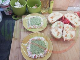 В случай, че сиреновият крем се получи прекалено гъст и солен, добавете парченца нарязан домат за да го разредите или сгъстете прекалено редкия крем с краве бяло сирене (винаги имайте под ръка някакво малко парченце (количество) от дадения продукт за доовкусяване и прецезиране на гъстотата). Разбърквайте и намачквайте с вилица след добавянето на съответния продукт (за сгъстяване или разреждане) за да прецените гъстотата и вкуса на крема (зависи от големината и водното съдържание на домата/ите и солеността на сиренето). Съобразявайте и според вида на продукта за гарниране (напълване) и неговото водно съдържание и особености (в случая е краставичнокопъровата супа).