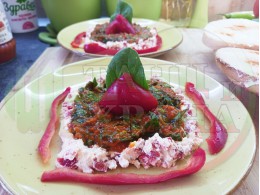 От известно време приготвям различни лютенични супи и салати с така обичаната още от детските ни години българска лютеница. Реших и този път да спретна за закуска полезна лютенична, сурова, гъста супа (да, сътворените от мен лютенични сурови супи ги измислих като вид полезна и засищаща закуска). Кой българин не е хапвал като дете филийки намазани с лютеница и сирене? Мисля, че няма такъв българин особено ако е отгледан и живял в България и така... спретнах лютенично спаначената супа със свеж спанак и едросмляна лютеница, която напоява кладенчетата от сиреновия крем, приготвен с червени пресни чушки. Мммм... отново се получи голяма вкусно, вкусна, вкусотия (вкуснотия)... и добавих пресни люти чушлета за леко пикантен, хрупкав, свеж и полезен акцент заедно с пресните домати laughing