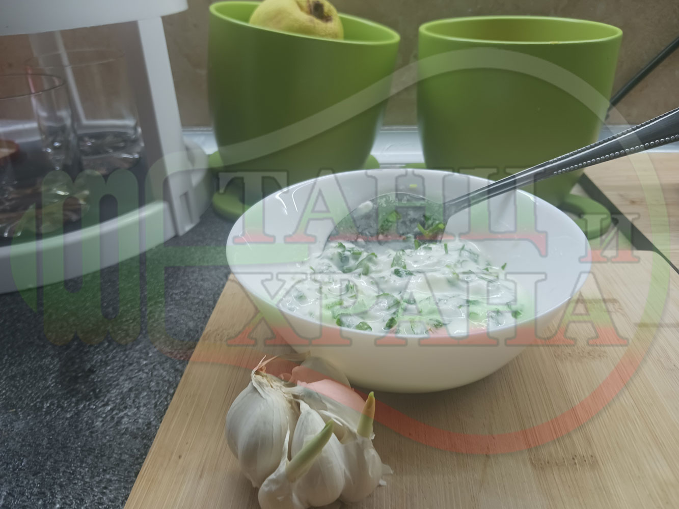 Млечен сос "Краставичен с кисело мляко и сирене" приготвен с краставици, магданоз, чесън, краве бяло сирене и кисело мляко от България
