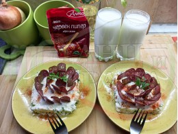 В "Свързани продукти" вижте рецептите на други видове млечни студени супи, салати и ястия с българско кисело мляко и краве бяло саламурено сирене, гарнирани с различни видове суджуци, салами, филета, колбаси и техни"ТЕ" производни.