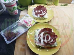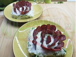 Създадох поредната нова, двукомпонентна млечна, сурова супа, нъпълнена в кладенчета от сиреново магданозен крем приготвен от българско краве бяло, саламурено сирене, стар чесън и свеж магданоз. Напълних кладенчетата с кисело мляко от България и гарнирах с нарязан на елипсовидни кръгчета телешки суджук (колбас). За пореден път се получи изключително вкусна млечна сурова супа, която "напоява" кравето бяло сирене с прекрасния, млечно кисел сок от българското кисело мляко, а телешкия суджук обогатява супата с така необходимите за човека животински протеини. Идеална комбинация и баланс между млечните и животински протеини с полезната бактерия "Лактобацилус Булгарикус", съдържаща се в българското кисело мляко. Ммммм... отново се получи голяма вкусно, вкусна, вкусотия (вкуснотия). ![]()