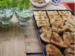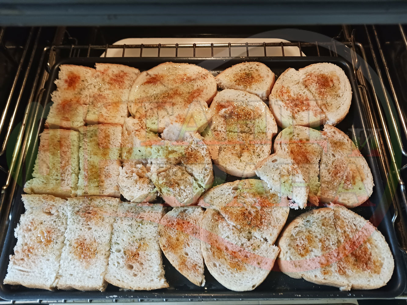 Крутони "Червенопиперкови с ронена чубрица" от бял хляб запечени на фурна със слънчогледово олио, червен сладък пипер и ронена чубрица