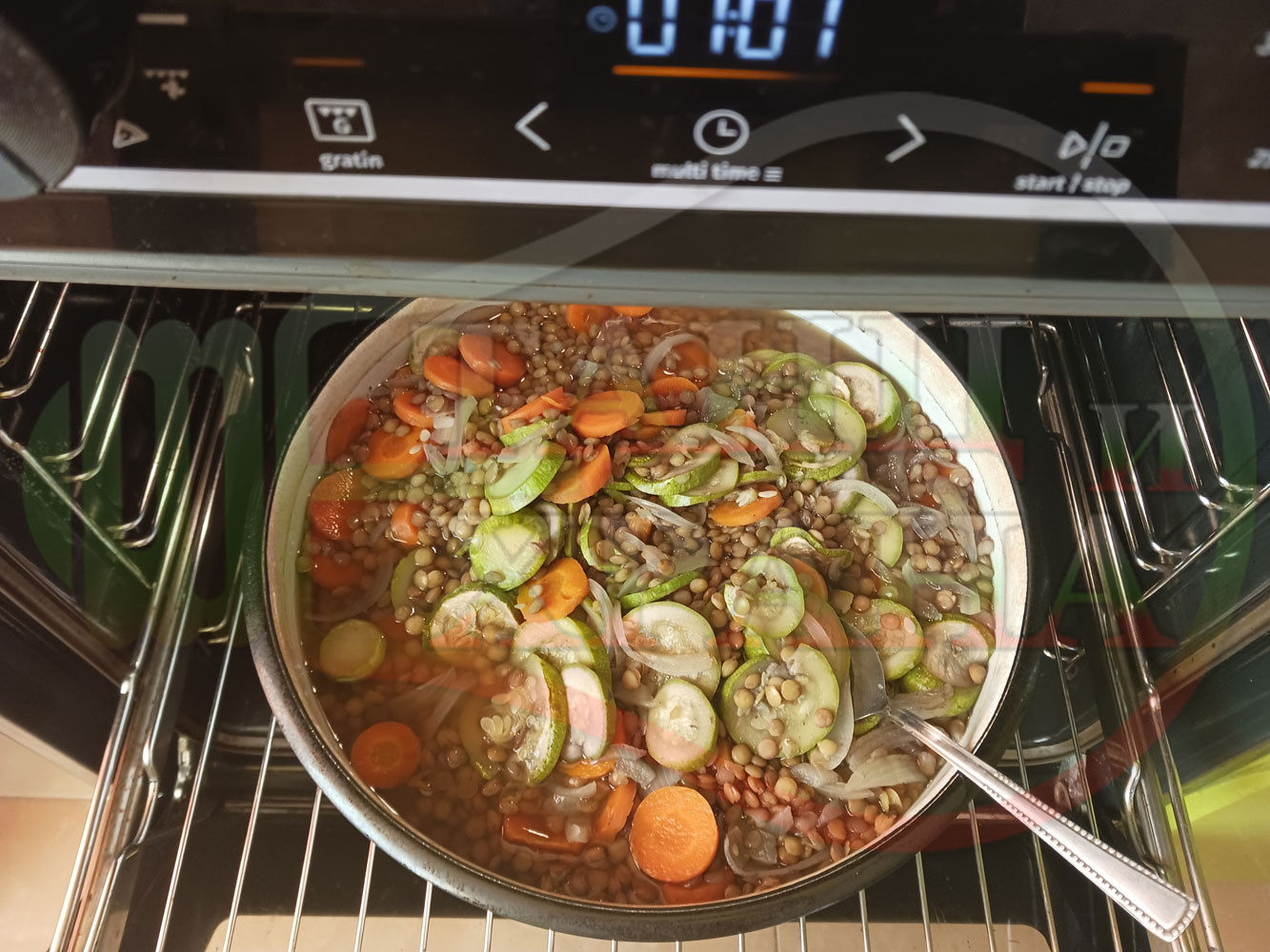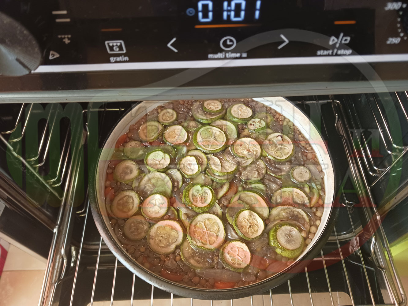 ВНИМАНИЕ: Фурните са различни и съответно времето за сваряване и леко запичане е ориентировъчно. Наблюдавайте процеса на запичане и при необходимост, покрийте с капак или отстранете тавата от фурната. Разбърквайте често продуктите за да се запекат съвсем леко и равномерно от всички страни (важи за тиквичките и морковите).
