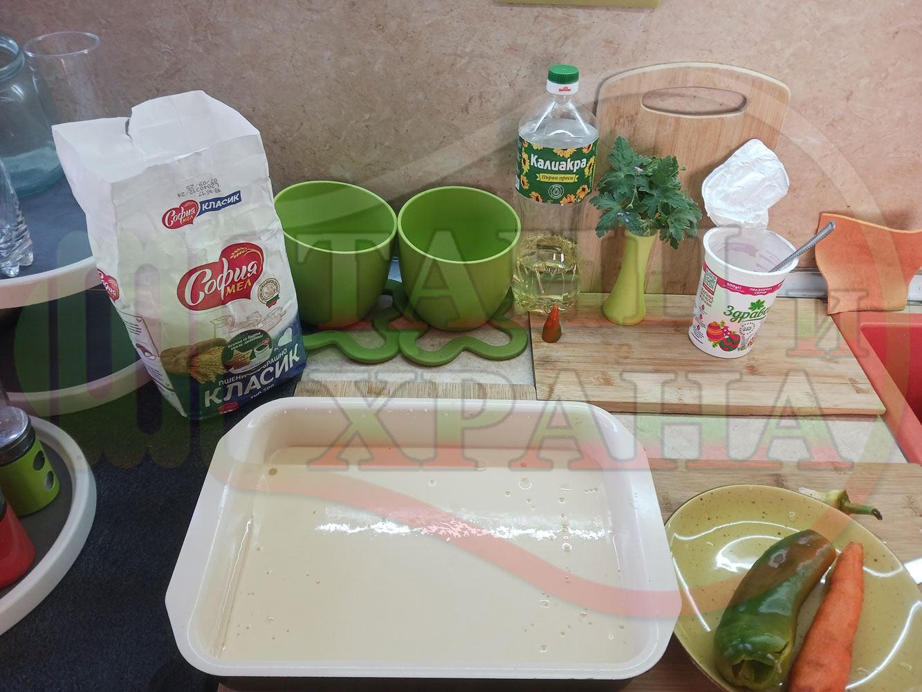 ПРОДУКТИ: Приблизителни количества за бухтена пита "Морковена зеленочушкова" изпечена на фурна със зелени пресни чушки и моркови и стар чесън омесена с яйца, сода за хляб и кисело мляко от България