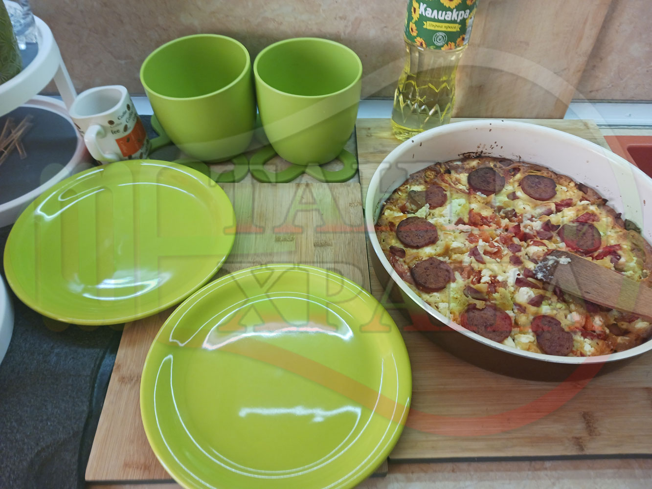 ПРОДУКТИ: Приблизителни количества за бухтена плоска солена торта "Саламова с домати и сирене" със салам, домати, краве бяло сирене и кромид лук омесена с кисело мляко от България