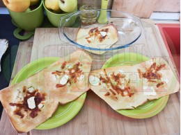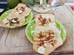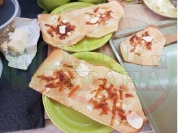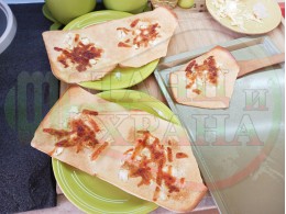 Спретнах необичайни по вид и на вкус палачинки, приготвени с прясно мляко, яйца и брашно, запечени с плънка от българско краве бяло сирене, млечен кашкавал и червен пипер. Към палачинките от едната тава, добавих пуешко жарено филе и макар да ги попрепекох се оказаха изключително вкусни. Ммммм... в кухнята се носи аромат на запечено масло с краве бяло сирене и вкусен, леко хрупкащ кашкавал. Отново се получи невероятна вкусно, вкусна, вкусотия (вкуснотия). ![]()