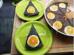 Бях си наумила да приготвя белтъчен десерт с някакъв пресен плод, така че белтъка да не се преизсушава и става ронлив (както се получава с белтъчния десерт наречен "целувки"). Комбинацията от белтък и пресен сочен плод е доста трудна за изпичане и все търсех някакъв начин да успея и накрая успях да приготвя десерт, в който да участват белтъците и пресните плодове в идеална хармония и баланс (успехът е домашен, наш си, според нашия вкус (наш - семейството ми)). Спретнах кексова торта, която дозапекох с белтъчен крем, гарниран с пресни, сочни мандарини. Тортата се получи изключително вкусна с невероятната комбинация от кекс, който носи сочността на пресния плод и меката кремообразност на белтъчния крем. Ммммм... отново се получи голяма вкусно, вкусна, вкусотия (вкуснотия). ![]()