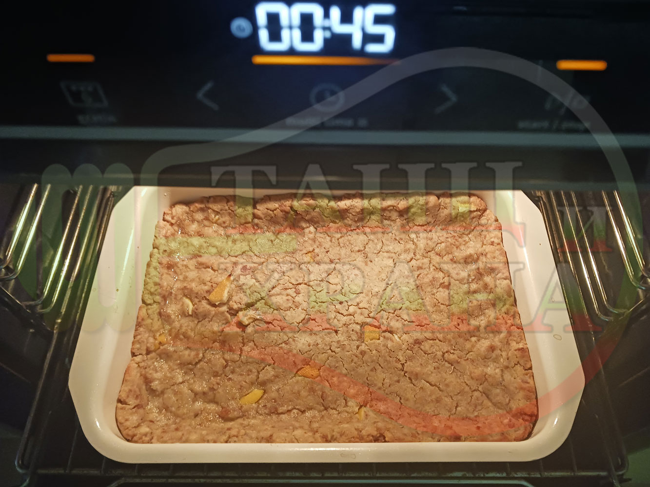 ВНИМАНИЕ: Фурните са различни и съответно времето за запичане е ориентировъчно. Наблюдавайте процеса на запичане и при необходимост, покрийте с хартия или фолио за печене.