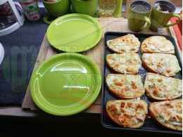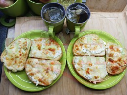 Български филийки "Кашкавалени червеносладкопиперени с БГсирене" запечени на фурна с краве масло, краве бяло сирене (българско, саламурено), червен сладък пипер и млечен кашкавал