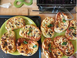 С повече масло филиите стават по-вкусни, сочни и ароматни. Преценявайте гъстотата на яйчено сиреновата плънка за да не станат филийките прекалено сухи и доста солени (зависи от големината на яйцата, солеността на българското краве бяло сирене и черните маслини).