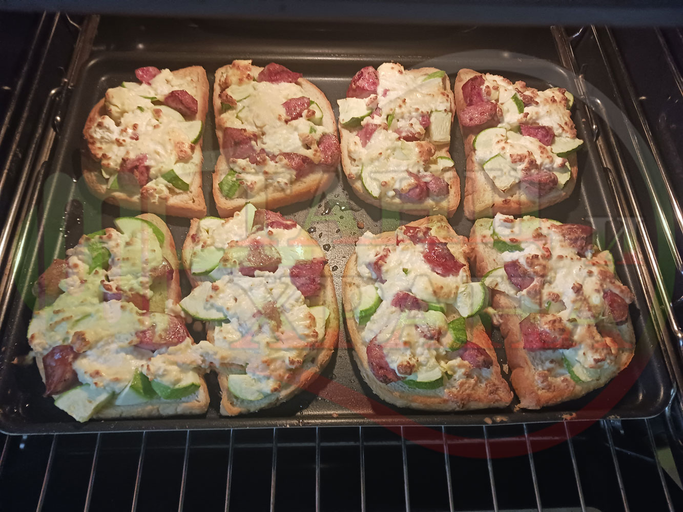 В "Свързани продукти" вижте рецептите на други видове филийки и сандвичи запечени на фурна, салати, печива и ястия с тиквички, наденица и техни"ТЕ" производни.