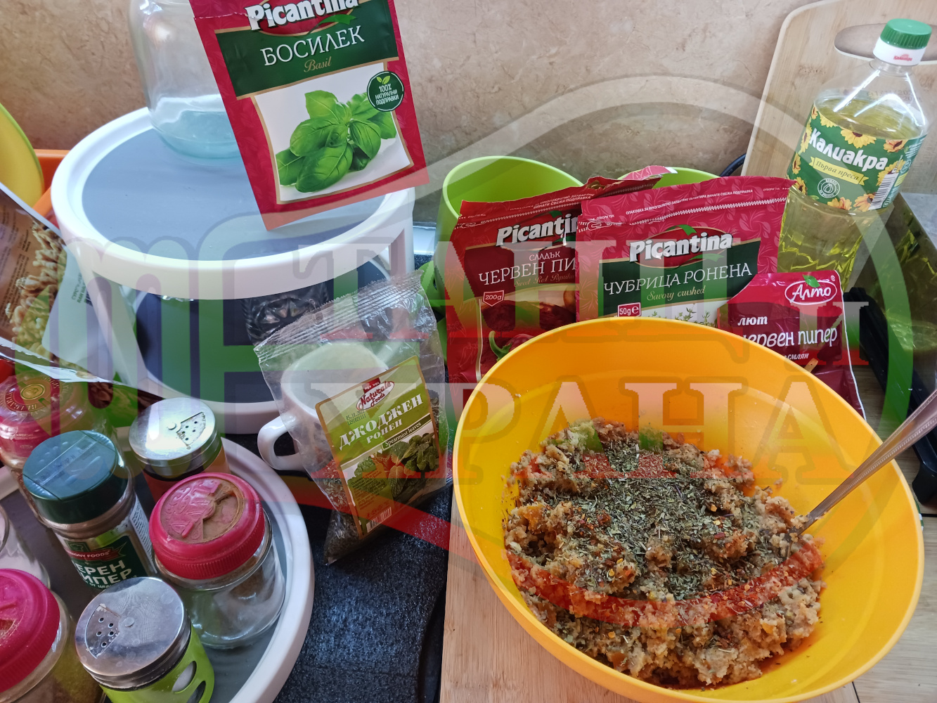 В хлебното тесто може да добавите лют червен пипер, който добре да разбъркате с намачкване. При плънката може да добавите настърган кашкавал.