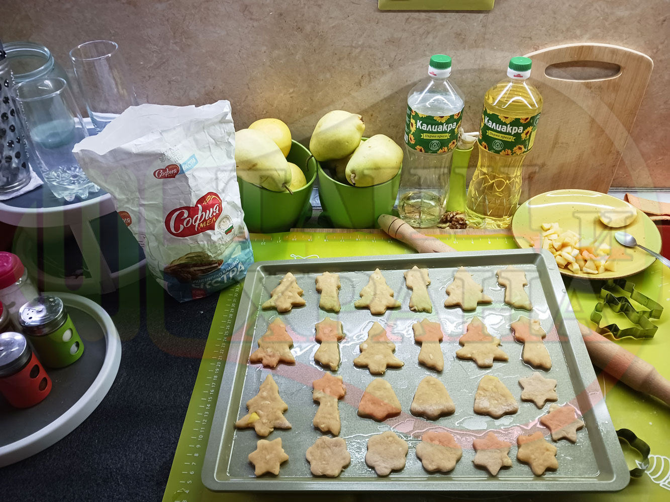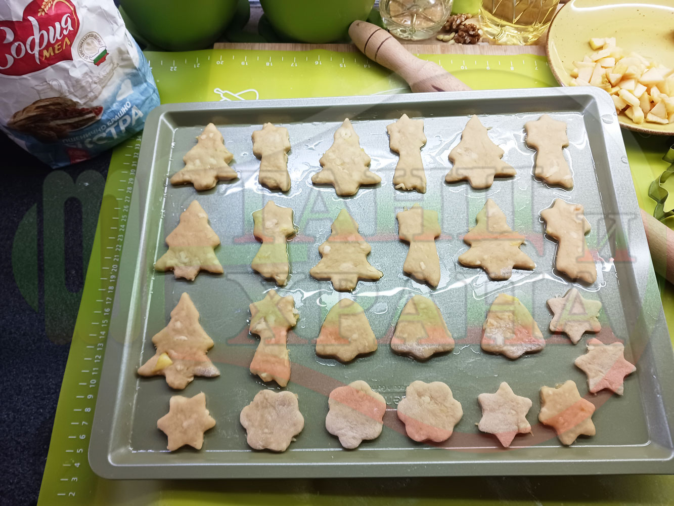 Български класически коледни курабийки "Ябълкови канелени" приготвени с пресни ябълки и канела за Коледа 2025 г. омесени с брашно, яйца и кристална захар