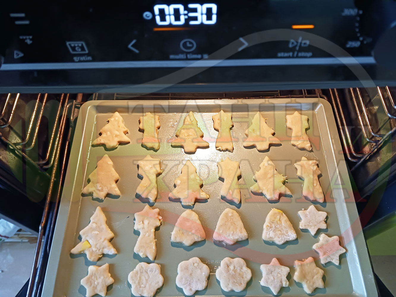ВНИМАНИЕ: Фурните са различни и съответно времето за запичане е ориентировъчно. Наблюдавайте процеса на запичане и при необходимост, покрийте с хартия, фолио за печене или сменяйте позициите на тавите според нивата на фурната за да се запекат равномерно курабийките без да ги покривате. Имайте предвид, че по-маките курабийки се запичат по-бързо от по-големите и е необходимо да ги изваждате от тавата веднага щом се запекат и дори да ги обръщате при необходимост.