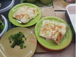 Дадох наименованието "Български омлет книга" заради киселото мляко от България, с което го приготвих и всички основни продукти произведени в България. Включих в наименованието "книга" заради метода на сгъване. Количеството, което съм описала в рецептата е за 2 порции.