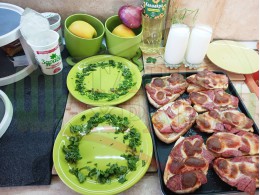 ПРОДУКТИ: Приблизителни количества за филийки "Родопсконаденицови кашкаваленомагданозени" запечени на фурна с краве масло, родопска наденица и млечен кашкавал гарнирани със свеж магданоз и кисело мляко от България