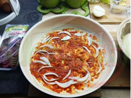 ПРОДУКТИ: Приблизителни количества за плоска солена торта "Луканкова кромидлучена червеночушковолютенична кашкавалена" запечена на фурна с луканка, едросмляна лютеница, червени пресни чушки, кромид лук и млечен кашкавал