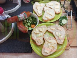 Реших да спретна нетрадиционна плънка за филийките (но традиционен, познат и обичан вкус) с краставица, копър, яйца, чесън и кисело мляко от България. Получиха се вкусни филийки, вплели традиционния вкус на обичаната от всеки българин лятна, студена супа (таратор). Родопската наденица допълва и обогатява вкуса с така необходимите животински протеини за всеки организъм. Мммм... отново се получи вкусно, вкусна, вкусотия (вкуснотия)... ![]()