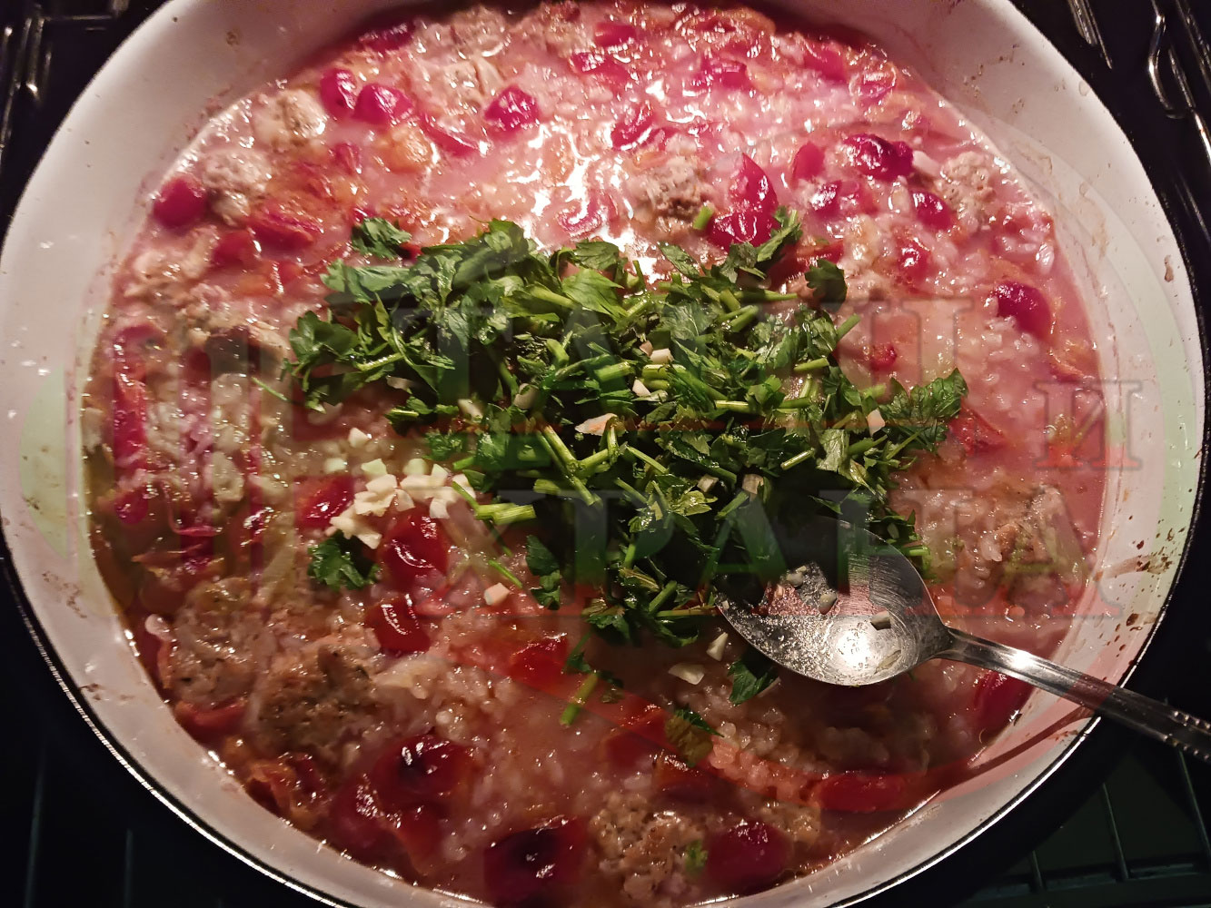 ВНИМАНИЕ: Мини кюфтенцата от картофеното пюре ще се разпаднат ако ги поставите в началото. Преценете дали искате като се разпаднат да овкусят ориза или да останат цели като ги добавите в края на варенето и запичането. И двата варианта имат предимства и се получават малки вариации от към вкус.