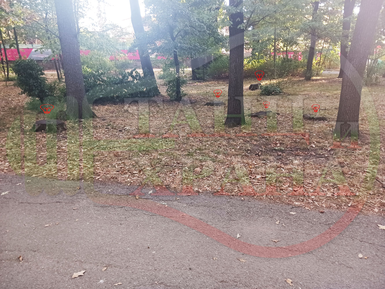 Масовото изсичане на дървета в Борисовата градина е изключително тревожно "явление". Броят на изсечените дървета през тази година (2025 г.), видимо се е увеличил. Преброихме 5 големи и 5 по-мали изсечени дървета в приблизително около 20 квадратни метра и се опитах да ги заснема, така че да се вижда максимален брой от тях (предполагам, че с дрон може да се заснемат всичките отсечени дървета в тези около 20 кв. метра или с друг вид подходяща снимачна техника). Би било безкрайно учудващо да се заснемат всичките отсечени дървета в Борисовата градина или поне по-големите (за документиране и дигитализиране на състоянието на парковете и градините в София най-вероятно само може да си мечтаем).