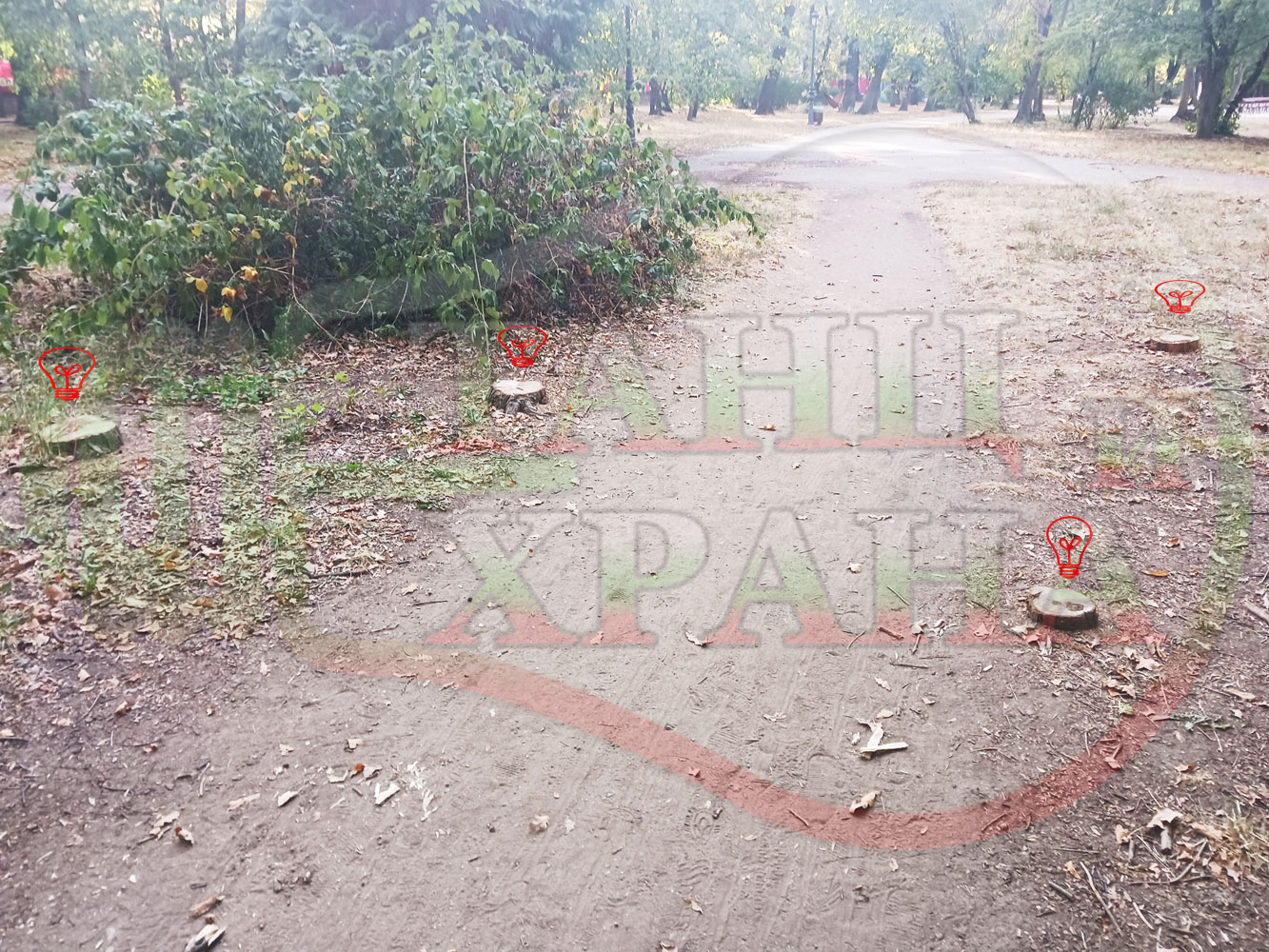 От приблизително три години ми прави впечатление, че се изсичат дърветата в Борисовата градина, в Княжеската градина, в Южния парк и на много места из София. Снимам някои от дърветата но за съжаление доста трудно се показва жалката картина със снимки от телефон (не мога да направя панорамна снимка, която да обхваща голяма част от изсечените дървета и то само на няколко квадратни метра).