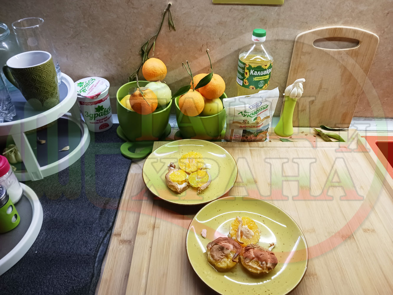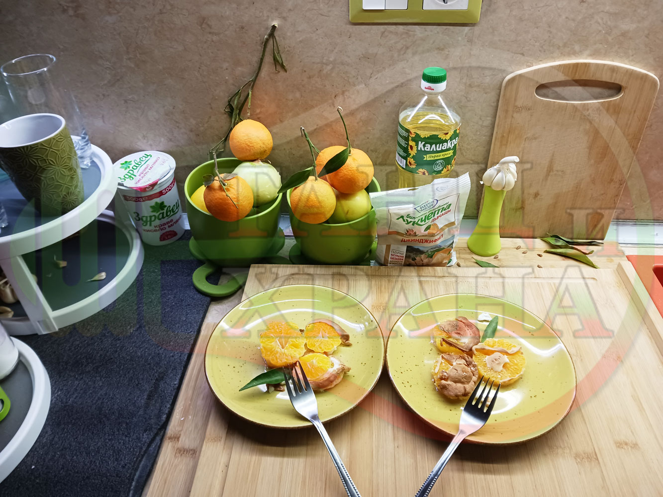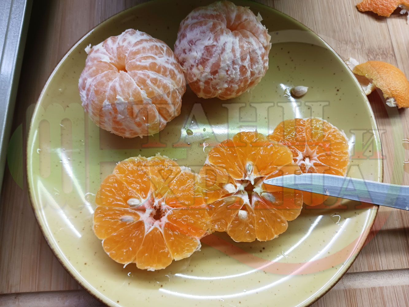 П. С. Листата на мандарината не са ядливи, горчат и ги поставяйте по-далече от мини плодовите десерти, без да се допират до мандарините за да не ги вгорчат.