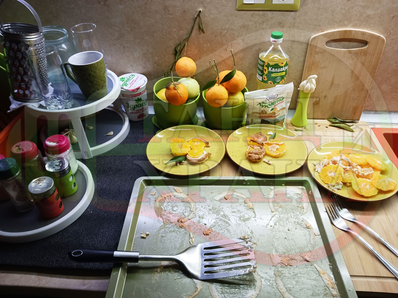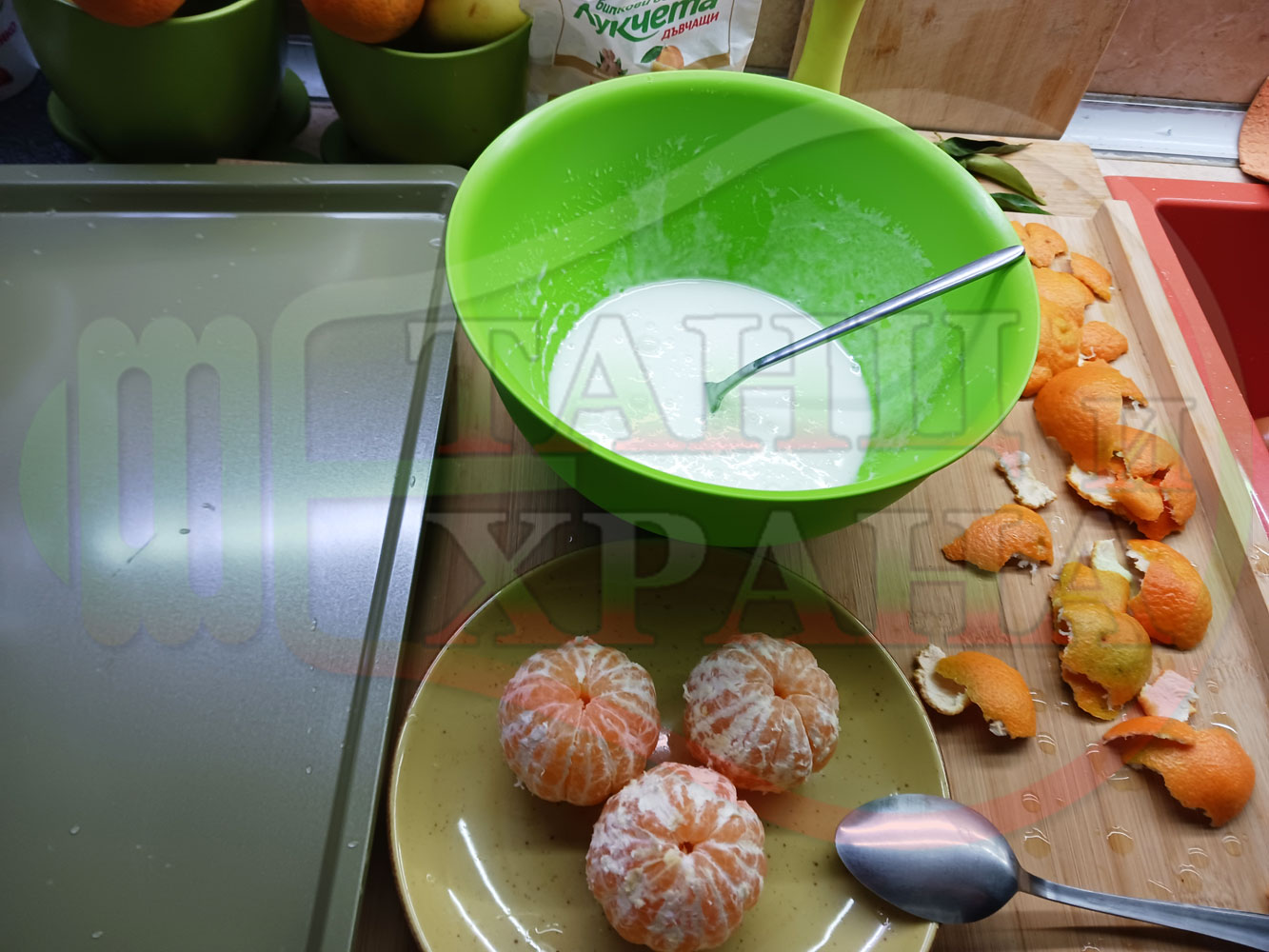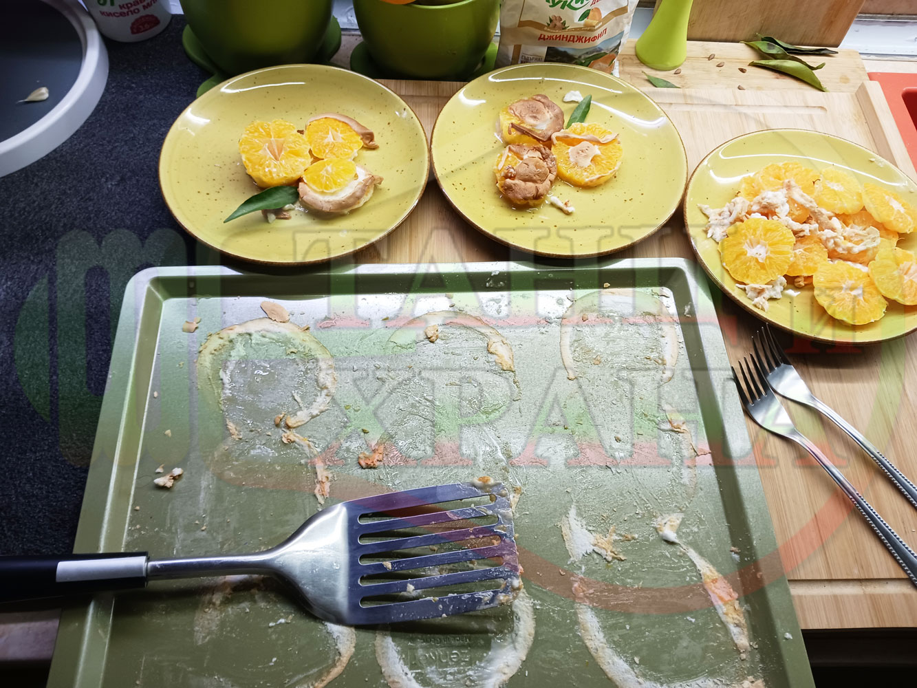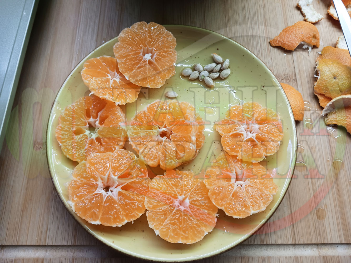 П. С. Листата на мандарината не са ядливи, горчат и ги поставяйте по-далече от мини плодовите десерти, без да се допират до мандарините за да не ги вгорчат.