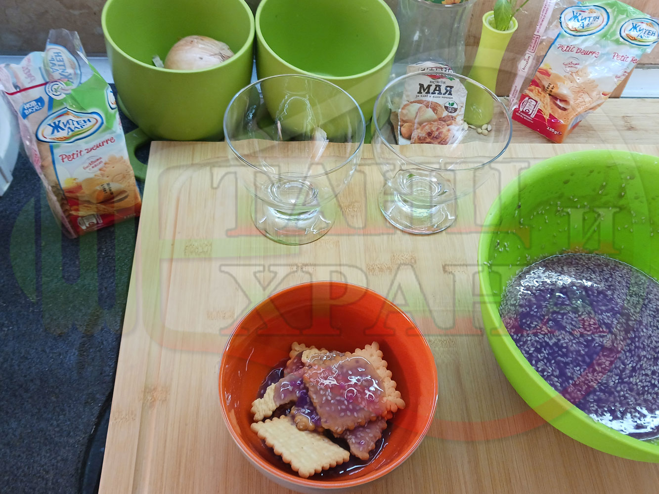 1. Бисквити - 10 бр. (обикновени с масло на "Житен дар")