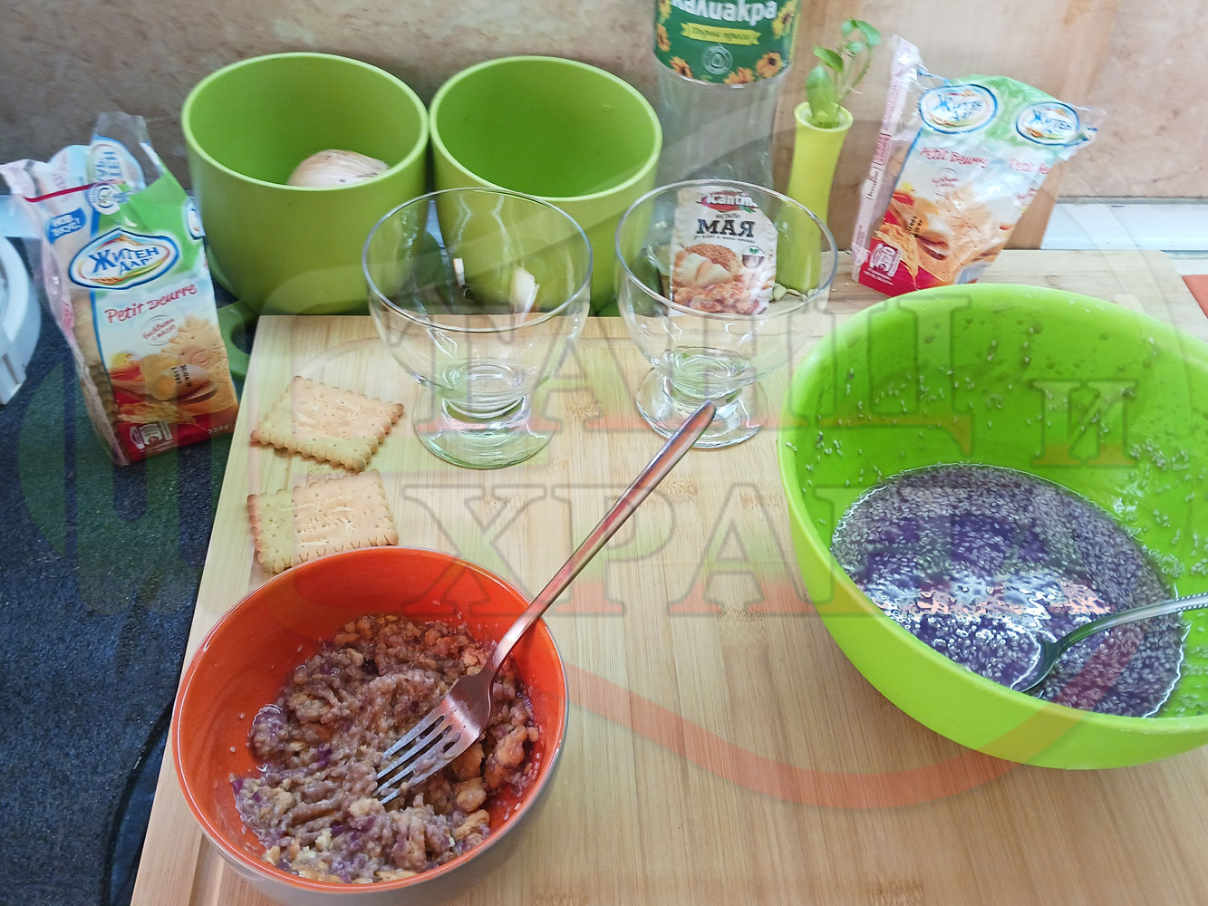 1. Бисквити - 15 бр. (обикновени с масло на "Житен дар")