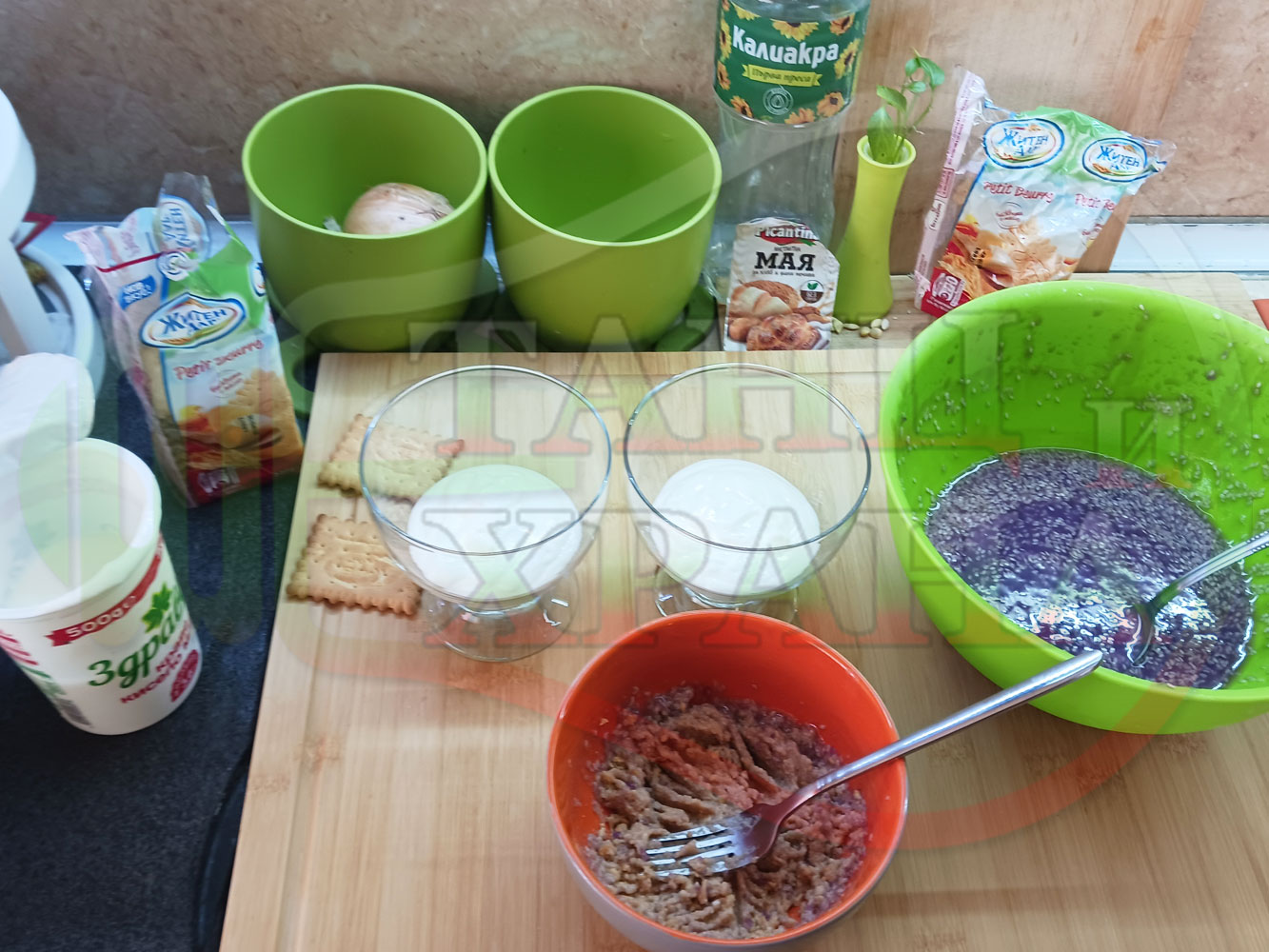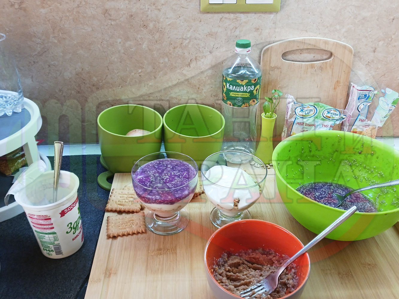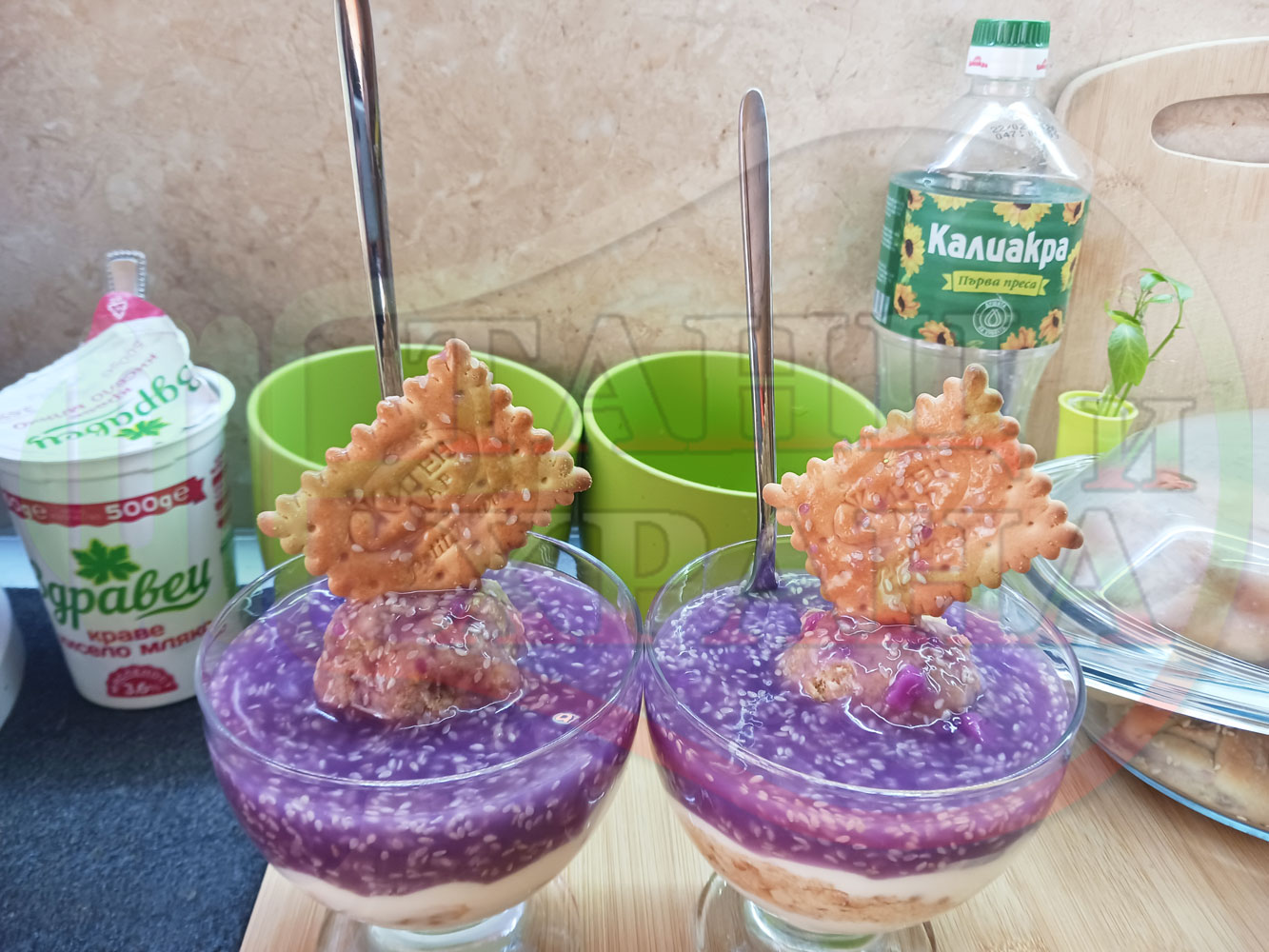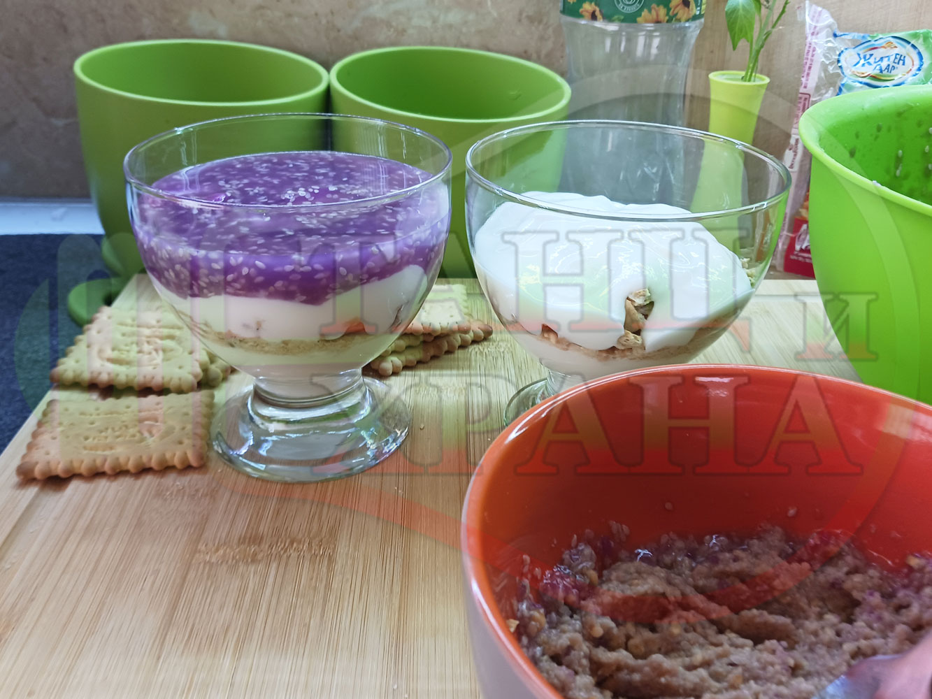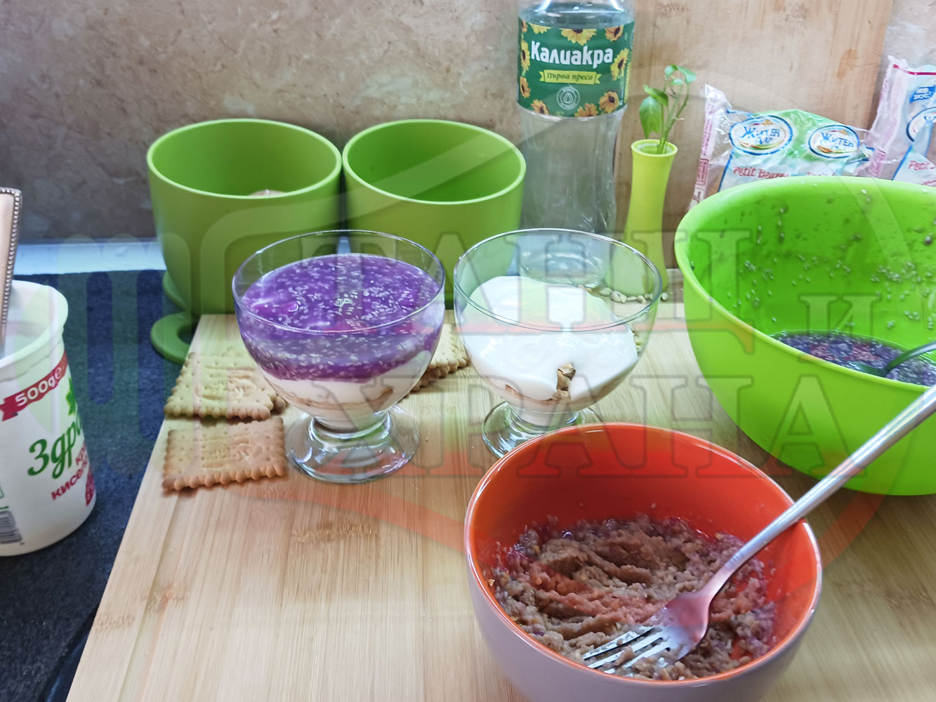 Един от най-големите празници през лятото е Голяма Богородица и естествено винаги проверявам дали се пости и какъв точно е вида на поста (в семейството ми има постещи и непостещи). Проверих в църковния календар и разбрах, че се пости на 15 Август 2025 година, и че има значение в кои дни от седмицата се "пада" празника. В случай, че празника се падне в Сряда или Петък се пости с олио и риба и не се яде месо. И така, пред мен стоеше голямото предизвикателство (защото не постя) да изпека и сготвя непостни ястия, които са подходящи за постещи хора. Реших да приготвя различни по вид солени хлебчета с лютеница, слънчогледови семки и сусам "Лютенични слънчогледовосемкови сусамени постни", а снимките от омесването на тестото са към рецептата за тези постни солени хлебчета. За подслаждане спретнах "бохчи (торбички) напълнени с постен нишестен крем от горски плодове и сусам изпечени на фурна от същото тесто, от което приготвих солените лютенични хлебчета (микс от хлебчета). От останалия рядък нишестен крем със суров сусам приготвих бисквитения десерт с кисело мляко от България (снимките от работния процес по приготвянето и овкусяването на нишестения рядък крем са към рецептата за постните сладки питки "Плодовогорски нишестени сусамени бохчи"). Бисквитеният млечен десерт се получи изключително вкусен с фина, мека и топяща се кремообразна текстура с хрупкав елемент от начупените бисквити и сусамените зрънца. Ммм... отново се получи голяма вкусно, вкусна, вкусотия (вкуснотия)... ![]()