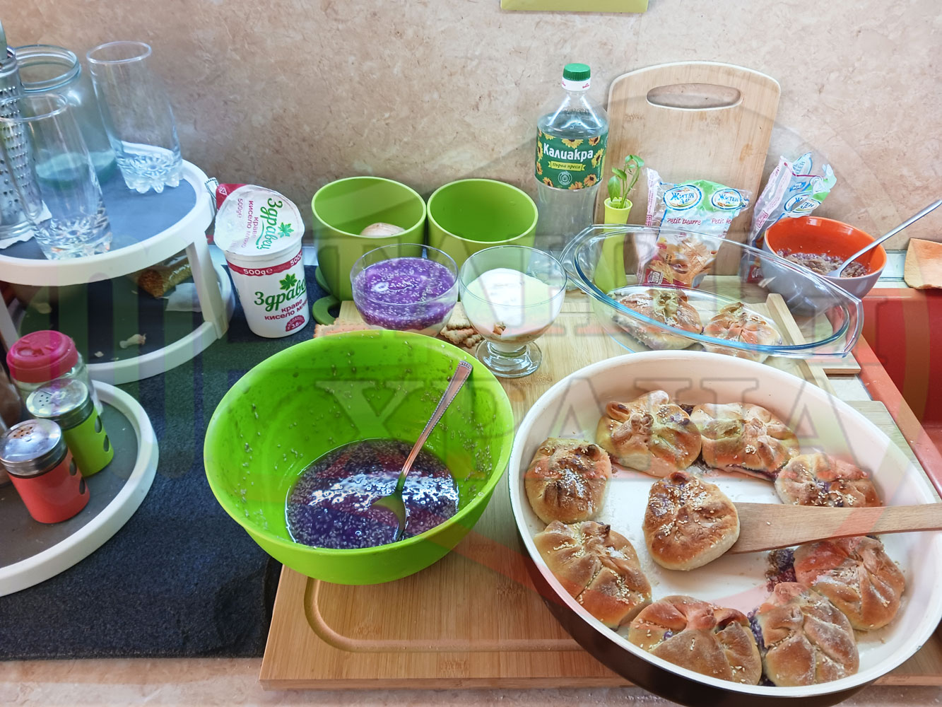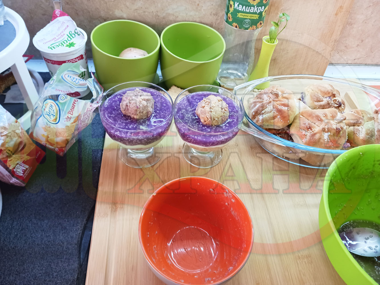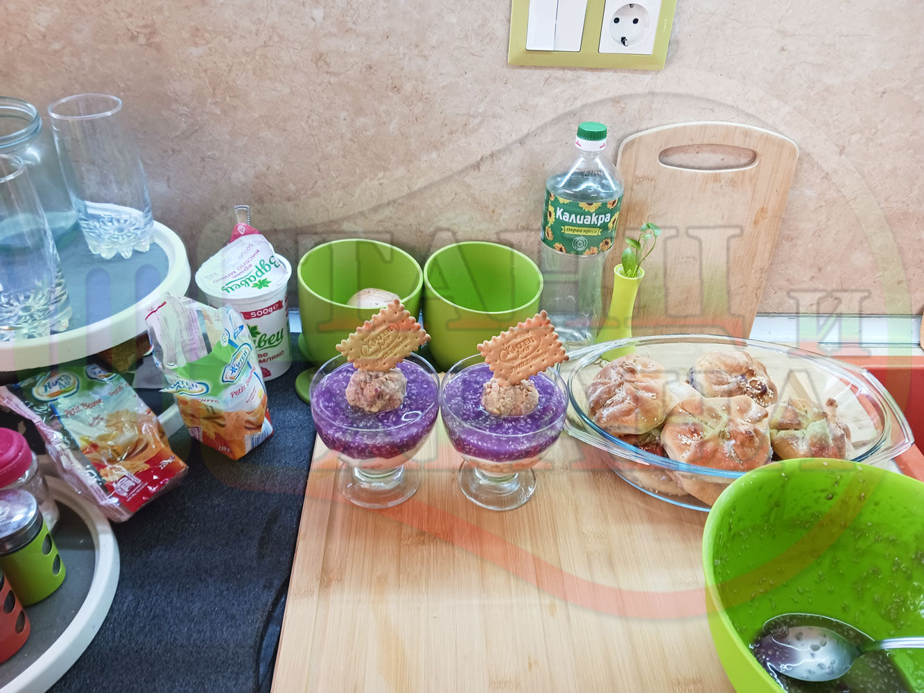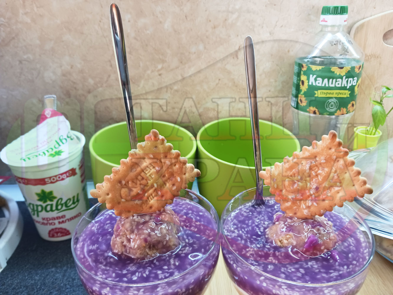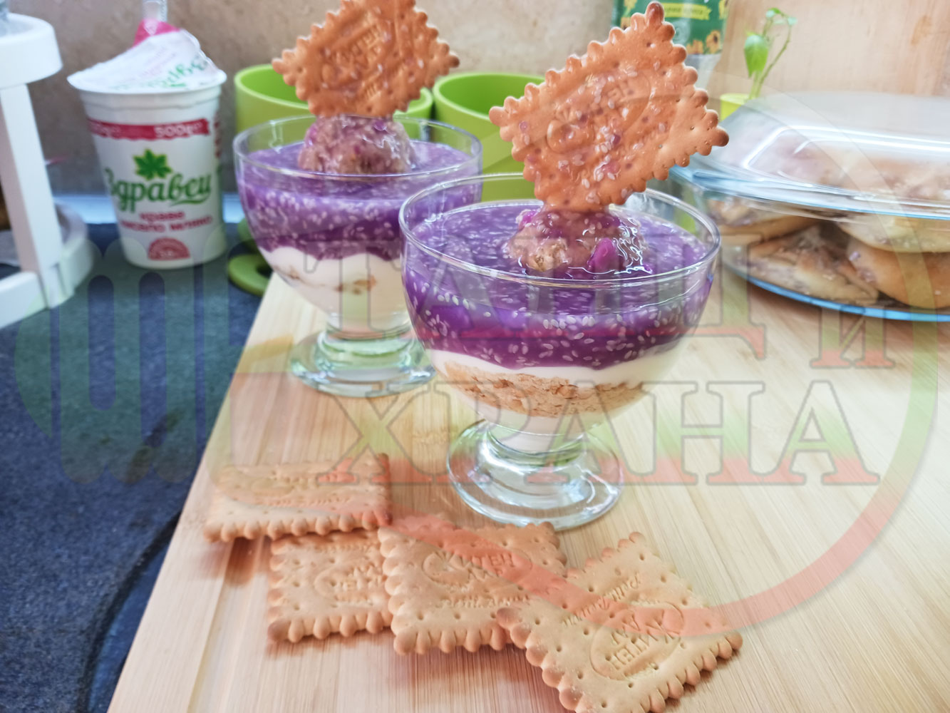 Един от най-големите празници през лятото е Голяма Богородица и естествено винаги проверявам дали се пости и какъв точно е вида на поста (в семейството ми има постещи и непостещи). Проверих в църковния календар и разбрах, че се пости на 15 Август 2025 година, и че има значение в кои дни от седмицата се "пада" празника. В случай, че празника се падне в Сряда или Петък се пости с олио и риба и не се яде месо. И така, пред мен стоеше голямото предизвикателство (защото не постя) да изпека и сготвя непостни ястия, които са подходящи за постещи хора. Реших да приготвя различни по вид солени хлебчета с лютеница, слънчогледови семки и сусам "Лютенични слънчогледовосемкови сусамени постни", а снимките от омесването на тестото са към рецептата за тези постни солени хлебчета. За подслаждане спретнах "бохчи (торбички) напълнени с постен нишестен крем от горски плодове и сусам изпечени на фурна от същото тесто, от което приготвих солените лютенични хлебчета (микс от хлебчета). От останалия рядък нишестен крем със суров сусам приготвих бисквитения десерт с кисело мляко от България (снимките от работния процес по приготвянето и овкусяването на нишестения рядък крем са към рецептата за постните сладки питки "Плодовогорски нишестени сусамени бохчи"). Бисквитеният млечен десерт се получи изключително вкусен с фина, мека и топяща се кремообразна текстура с хрупкав елемент от начупените бисквити и сусамените зрънца. Ммм... отново се получи голяма вкусно, вкусна, вкусотия (вкуснотия)... ![]()