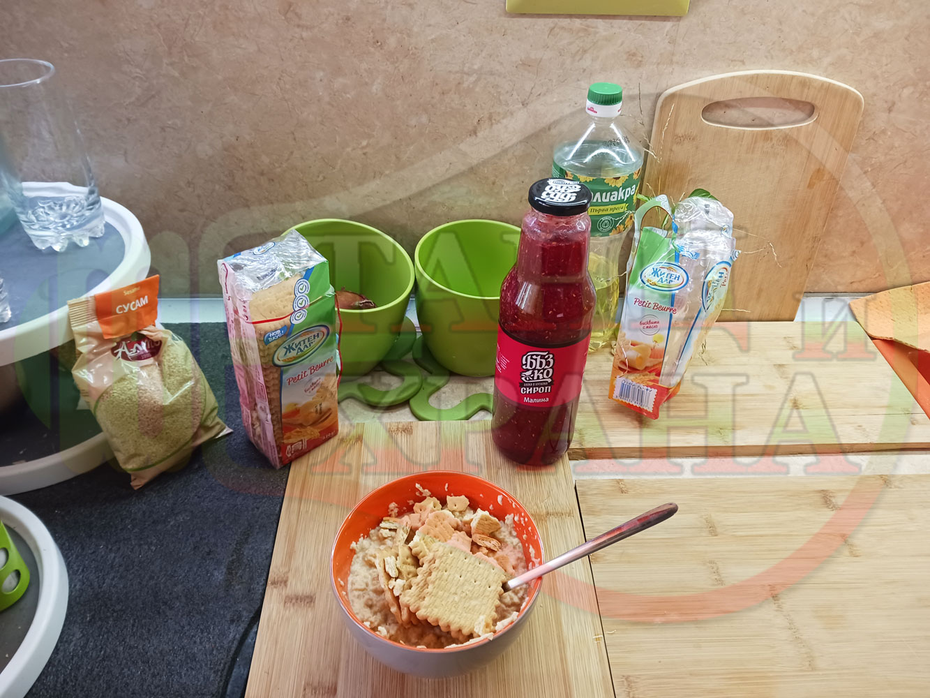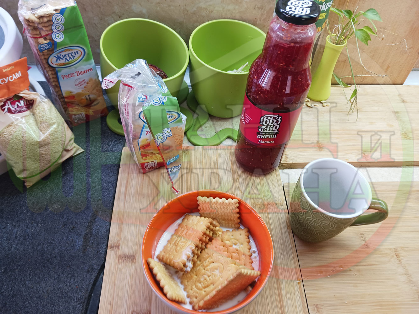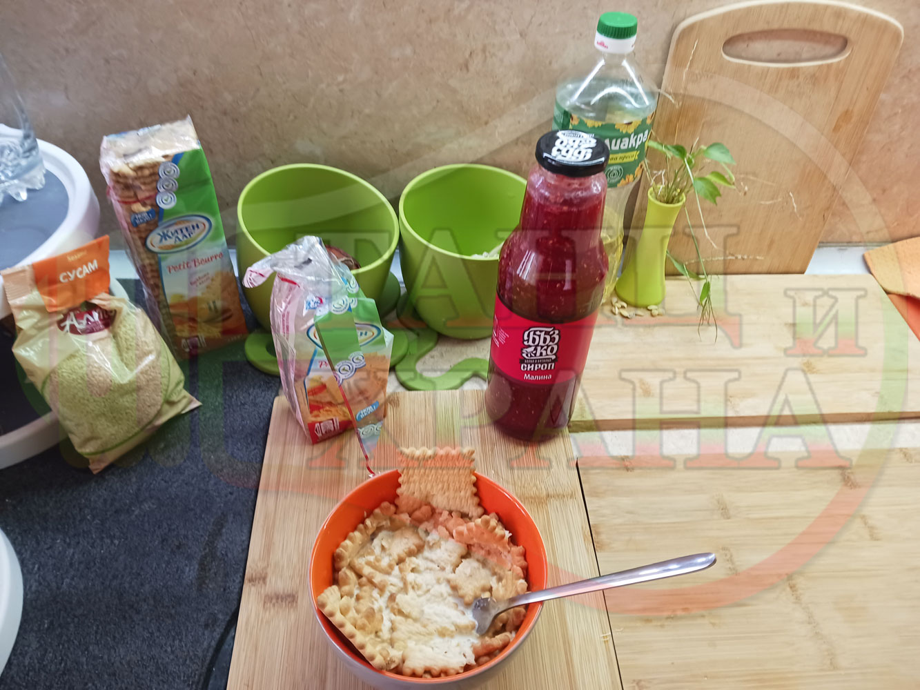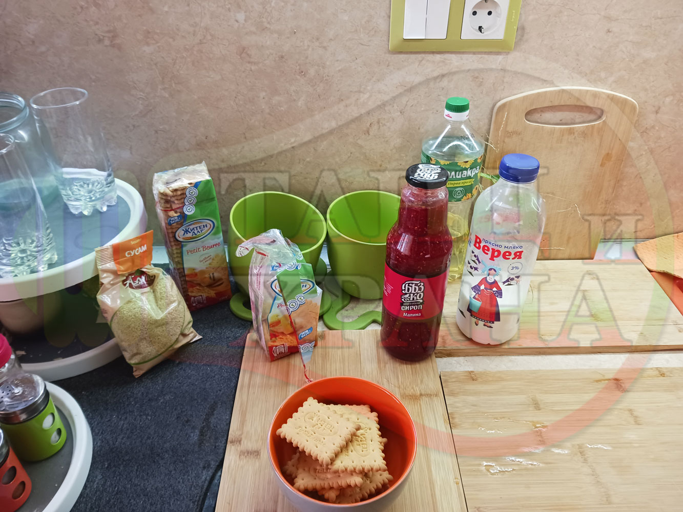1. Бисквити - 1 пакет (обикновени с масло от 220 гр.)