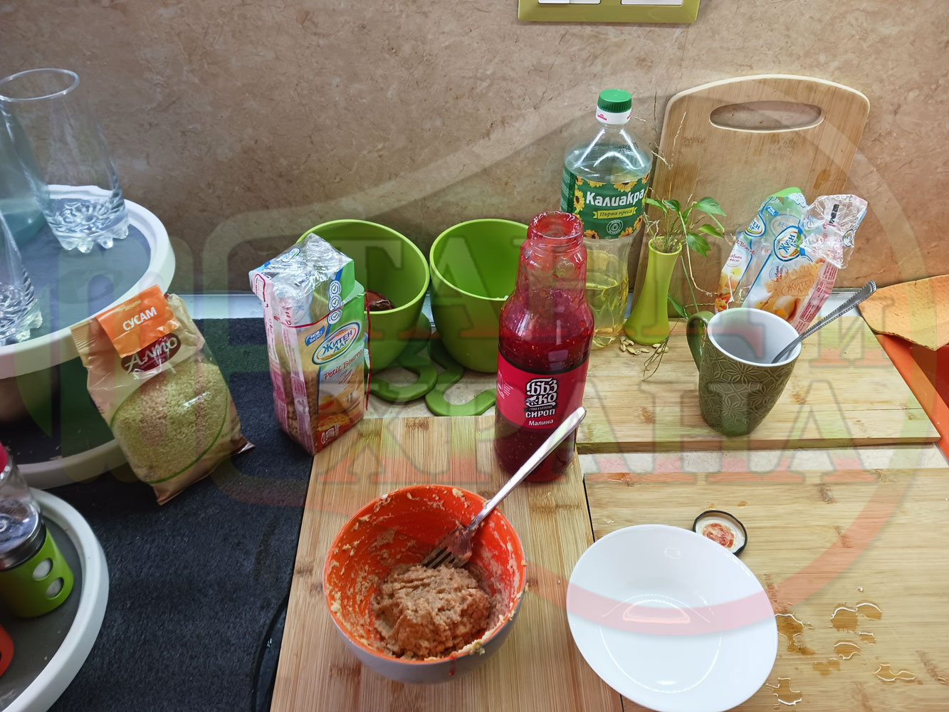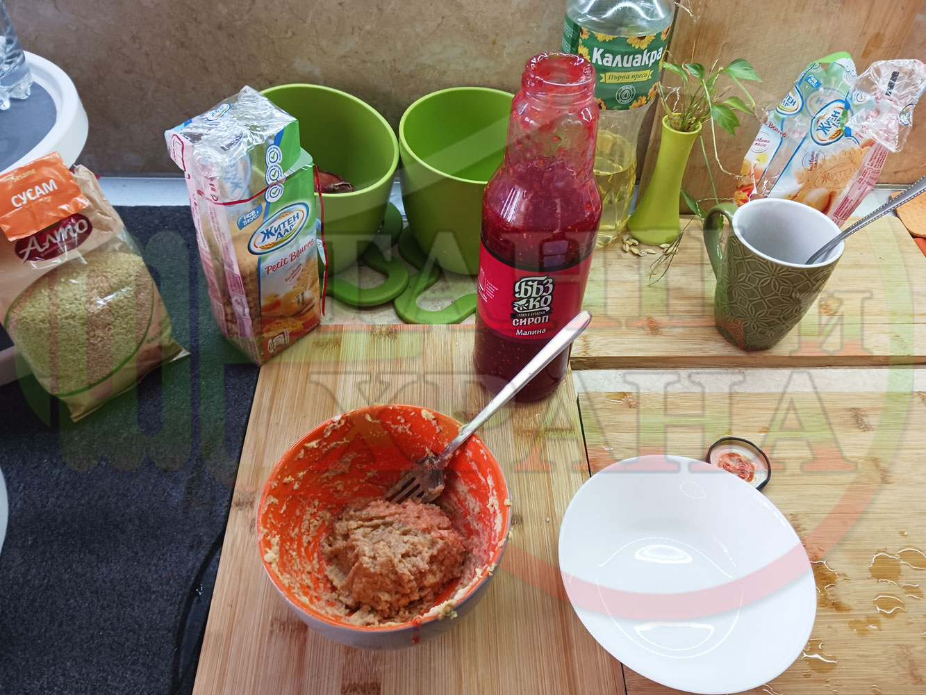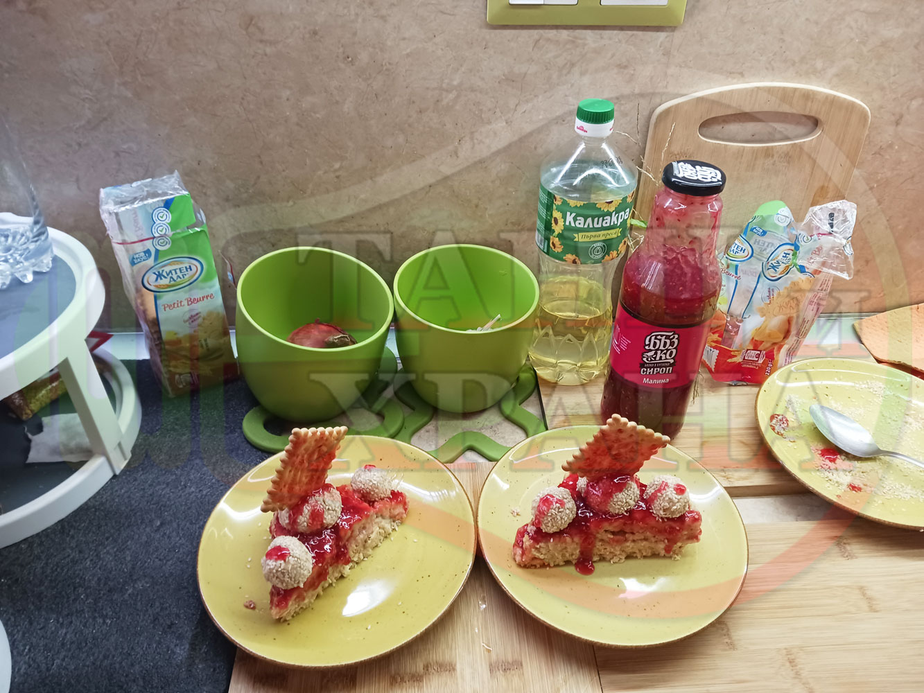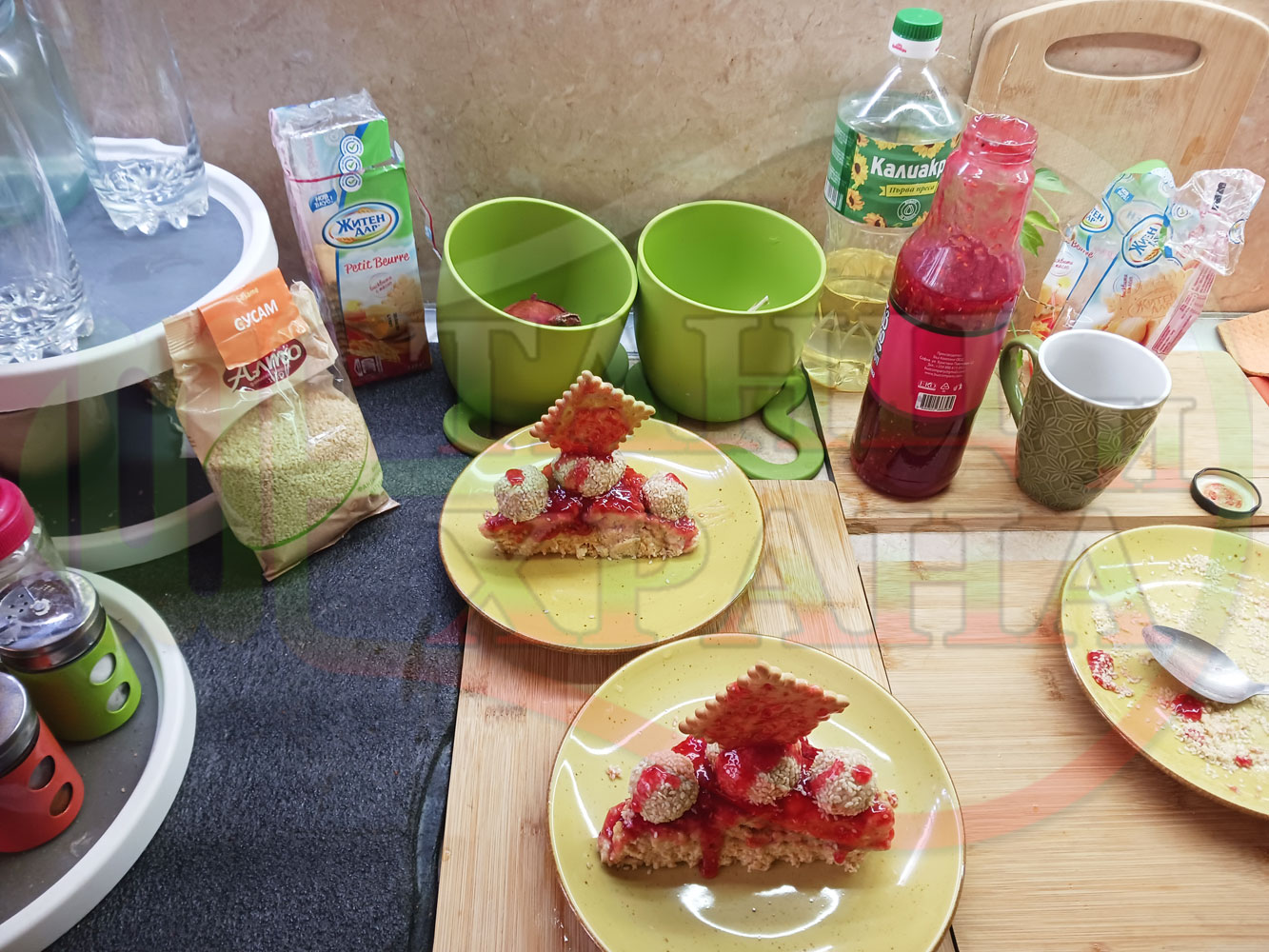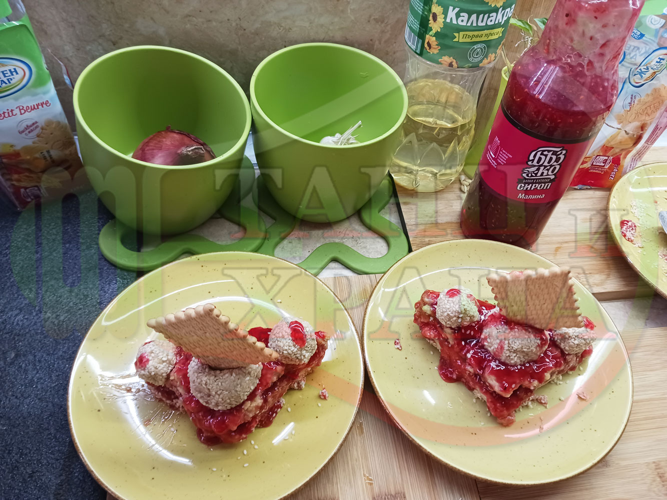 1. Бисквити - 1 пакет (обикновени с масло от 220 гр.)